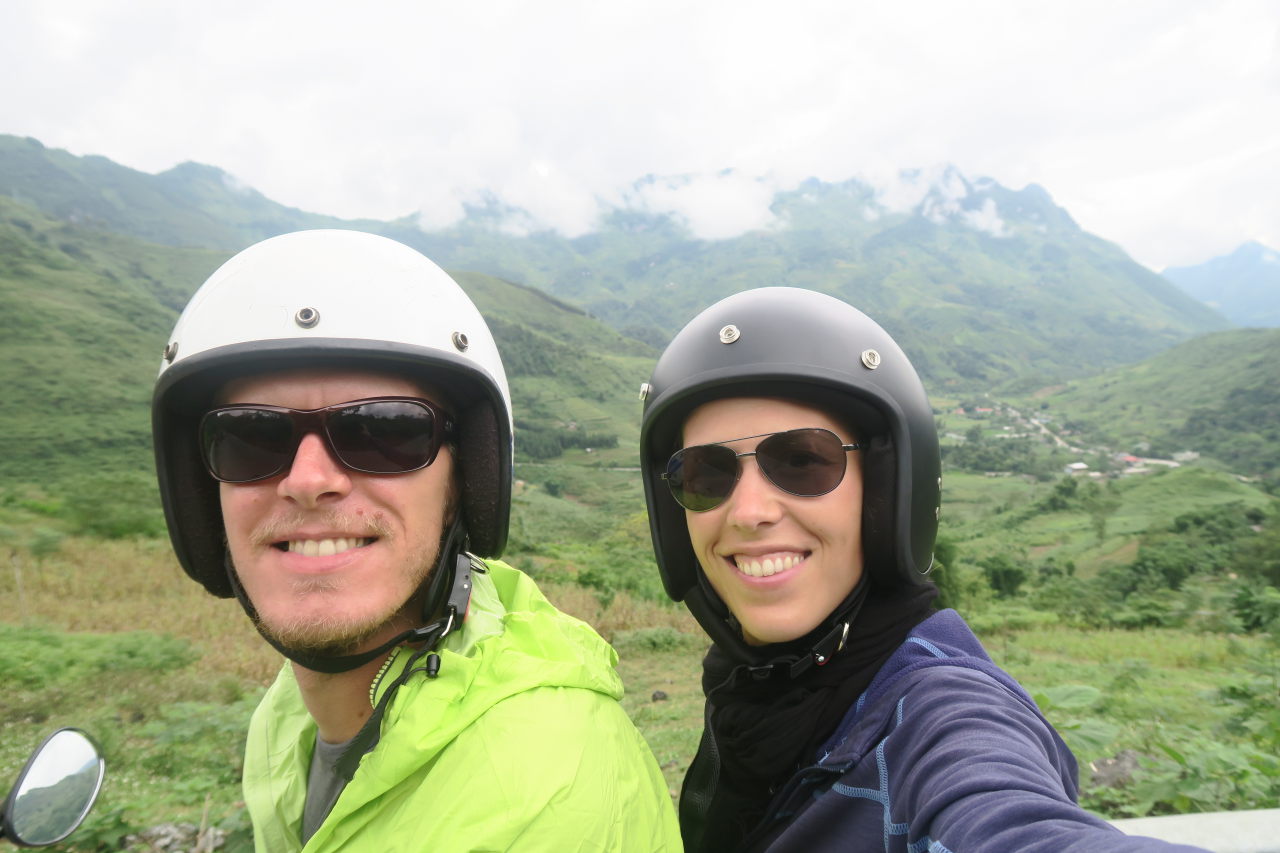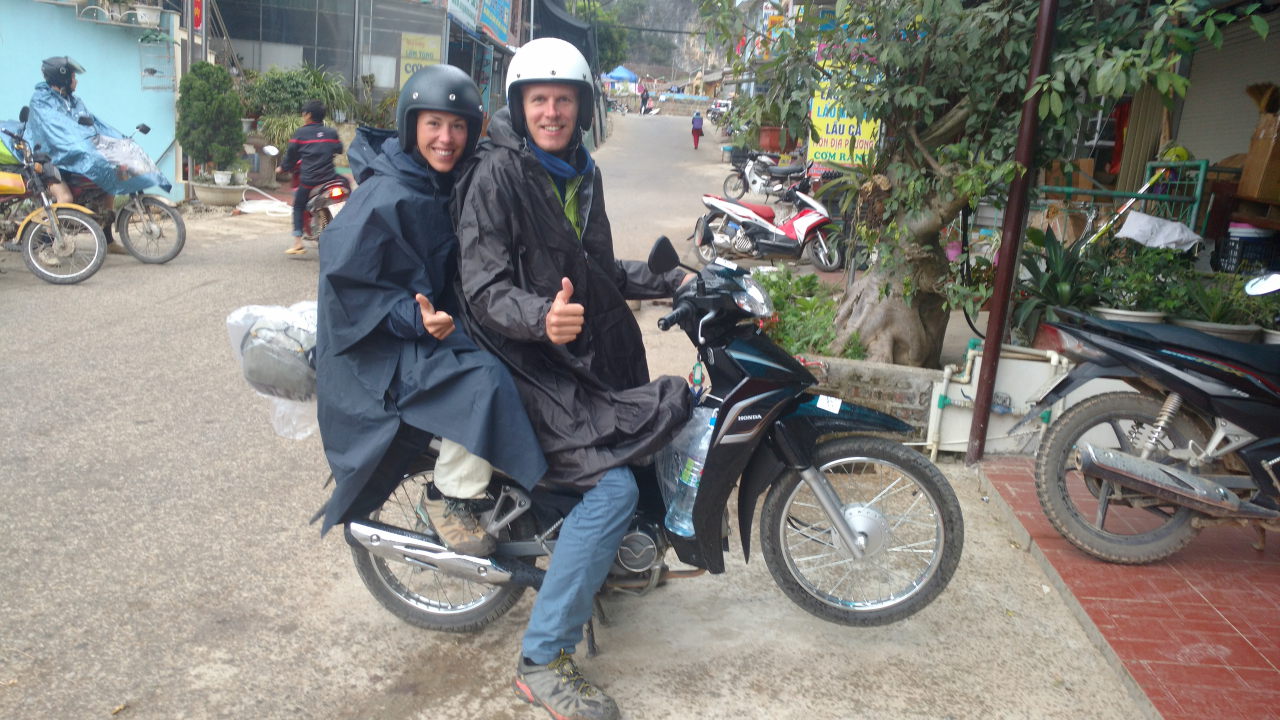 Autant dire que le lendemain à 7h, au moment de remonter à l’arrière de notre « Honda blade 110 cc » pour 150 km de virages et de routes défoncées, Elise n’en menait pas large. Les paysages – magnifiques – n’arrivent pas à faire oublier les 6 heures de routes cabossées, le froid, le vent, et les nids de poule. Arrivés à Dong Van, on s’arrête pour la fin d’aprèm et la nuit. On devait parcourir 50 km de plus, mais vu l’état d’Elise (elle grelotte, elle a mal partout, elle à la migraine et la fièvre et elle pleure sans arriver à se contrôler), c’est mieux ainsi. Ce qui semblait, au départ, être un coup de froid, ne passe pas vraiment.
