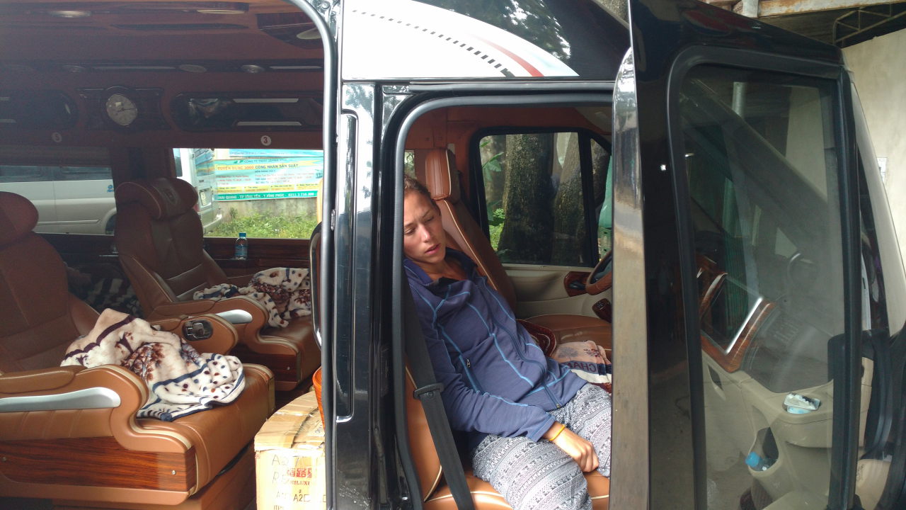 Clairement, il fallait qu’on rentre à Hanoï, à 6 heures de route. On prend donc le lendemain un bus « limousine » en espérant que le trajet sera plus cool qu’à l’aller (en bus de nuit). Le bus est mieux certes, mais le chauffeur conduit comme un malade, en klaxonnant tout le temps. Les virages de montagnes donnent encore plus envie de vomir à Elise qui, bien que assise à coté du conducteur, finie par se recroqueviller sur le deuxième siège pour moins sentir la route et dormir un peu. A l’arrivée à Hanoï, Elise est lessivée, meurtrie mais soulagée d’être enfin là. On file direct à un hôpital recommandé par notre assurance (Family Medical Practice).