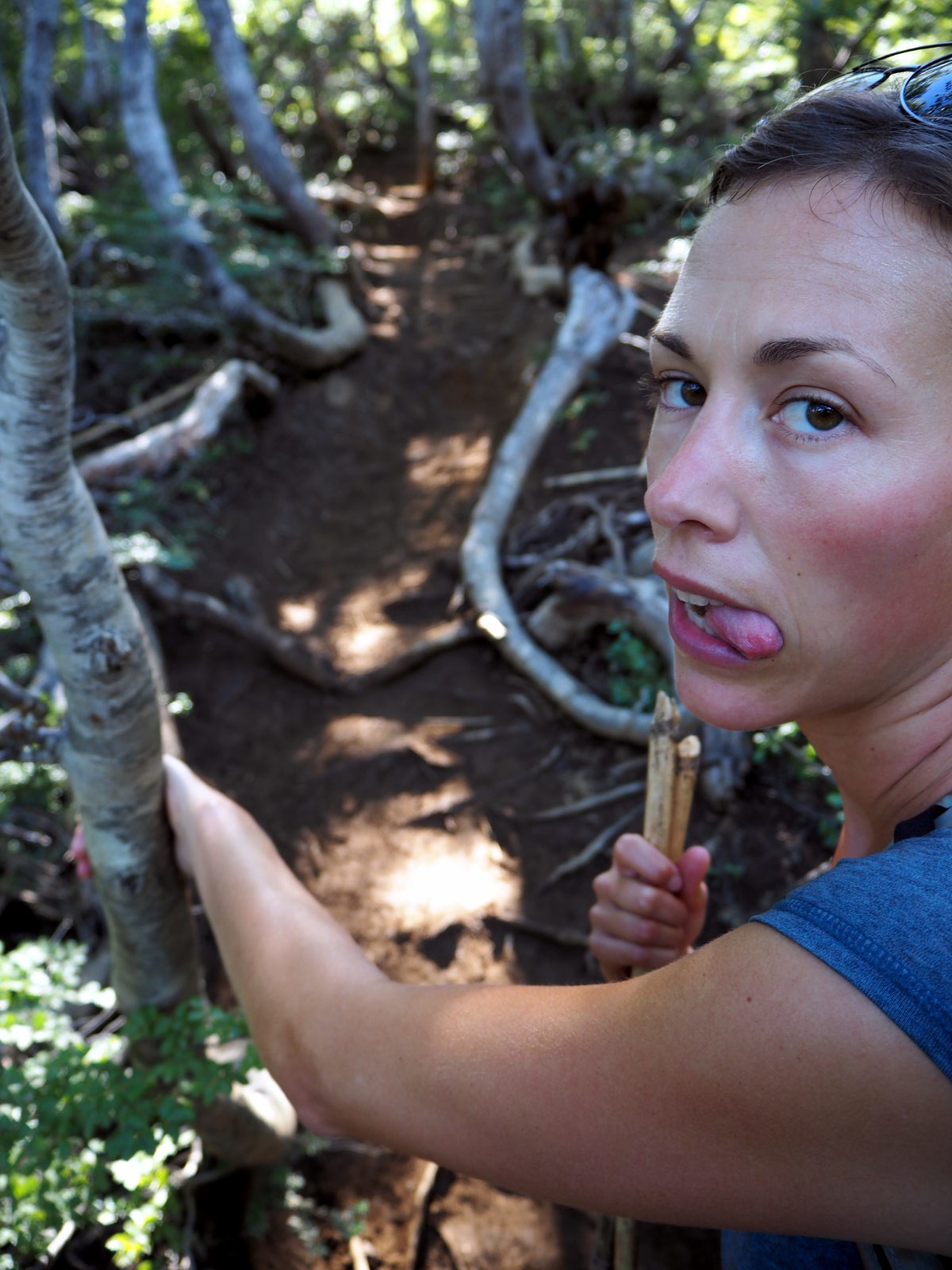 Après une micro pause photos, on reprend de nouveau le chemin à travers une autre forêt. La montée est de nouveau raide et encore plus qu’au début avec des passages un peu glissant dans la terre. La randonnée fini par des passages dans les rochers et sur une crête. Elise qui a le vertige était loin d’être rassurée !