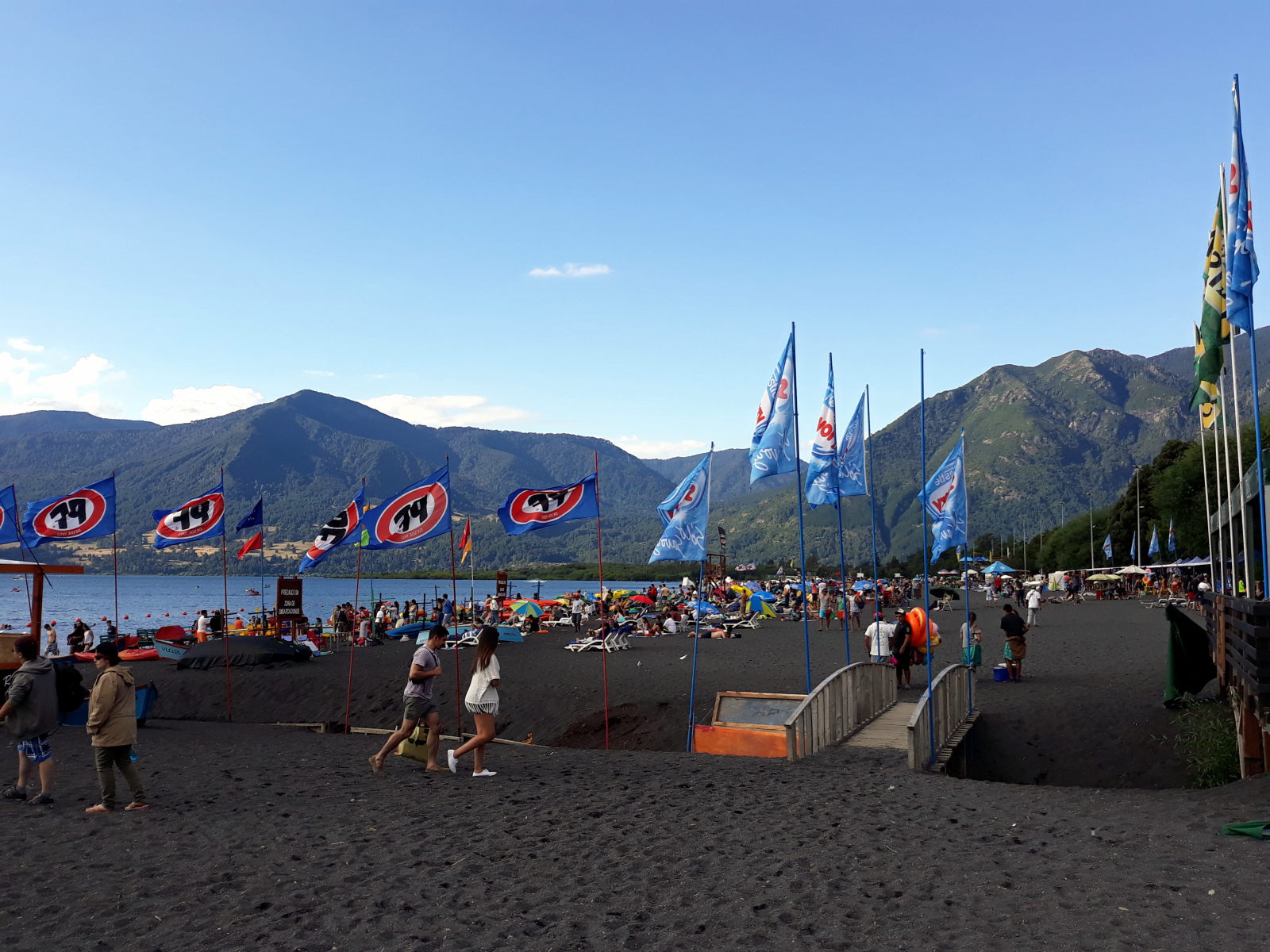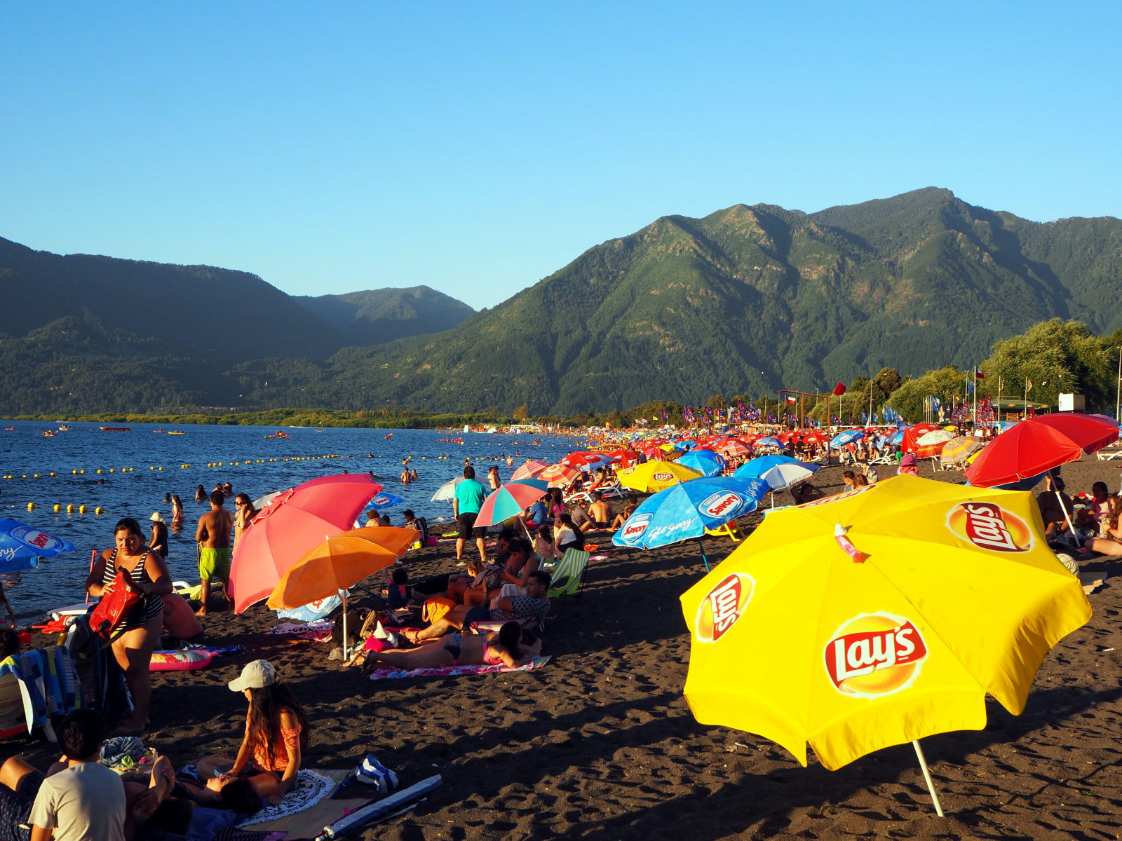 La ville de Pucón est hyper touristique. De nombreuses boutiques, des restaurants et des bars… Tout est très cher. Cette ville se situe au pied du volcan Villarica, et est bordée d’un lac du même nom. La plage est noire de monde en été. Un peu genre « les bidochons en vacances » si vous voyez le genre…