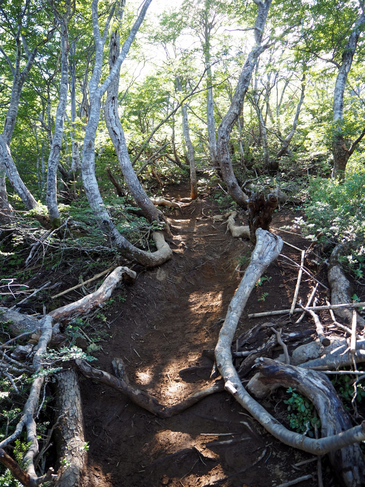 La famille, très gentille, nous dépose avant notre destination, mais elle nous a déjà bien avancé sur le chemin pentu ! L’ascension continue avant d’arriver à du plat et de jolies clairières. Il n’y a aucun panneau de signalisation… En arrivant à une pâte d’oie, nous décidons de prendre la route à droite plutôt que le chemin à gauche. Mais après 10 minutes nous tombons sur une barrière fermée…