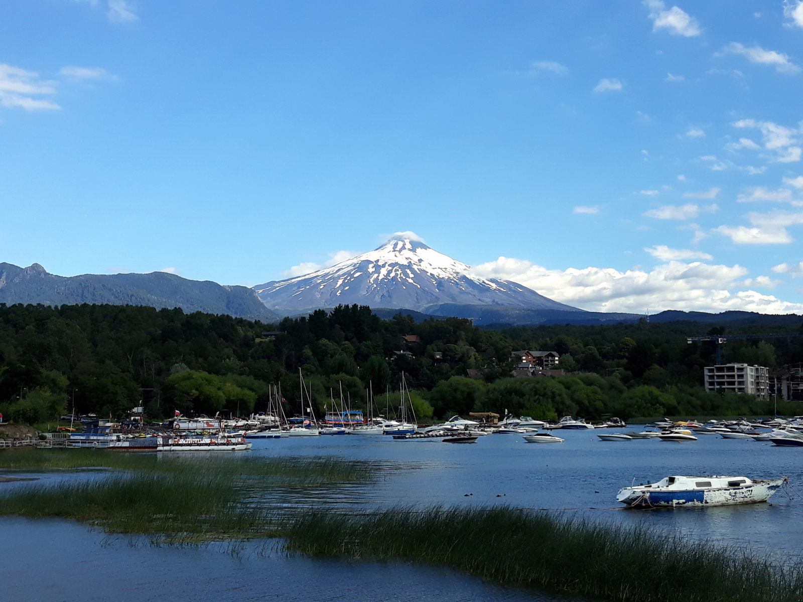 Et comme en Patagonie, le lendemain, c’est grand beau ! Nous pouvons dès lors voir l’incroyable volcan Villarrica en toile de fond depuis la ville et nous sommes tout de suite impressionnés par sa beauté !