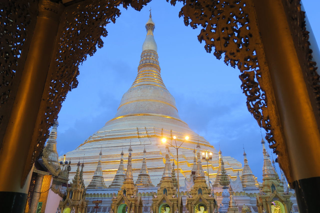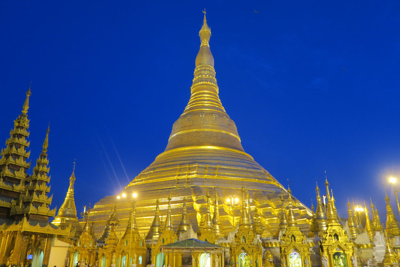 La pagode Shwedagon vue depuis l’entrée Nord