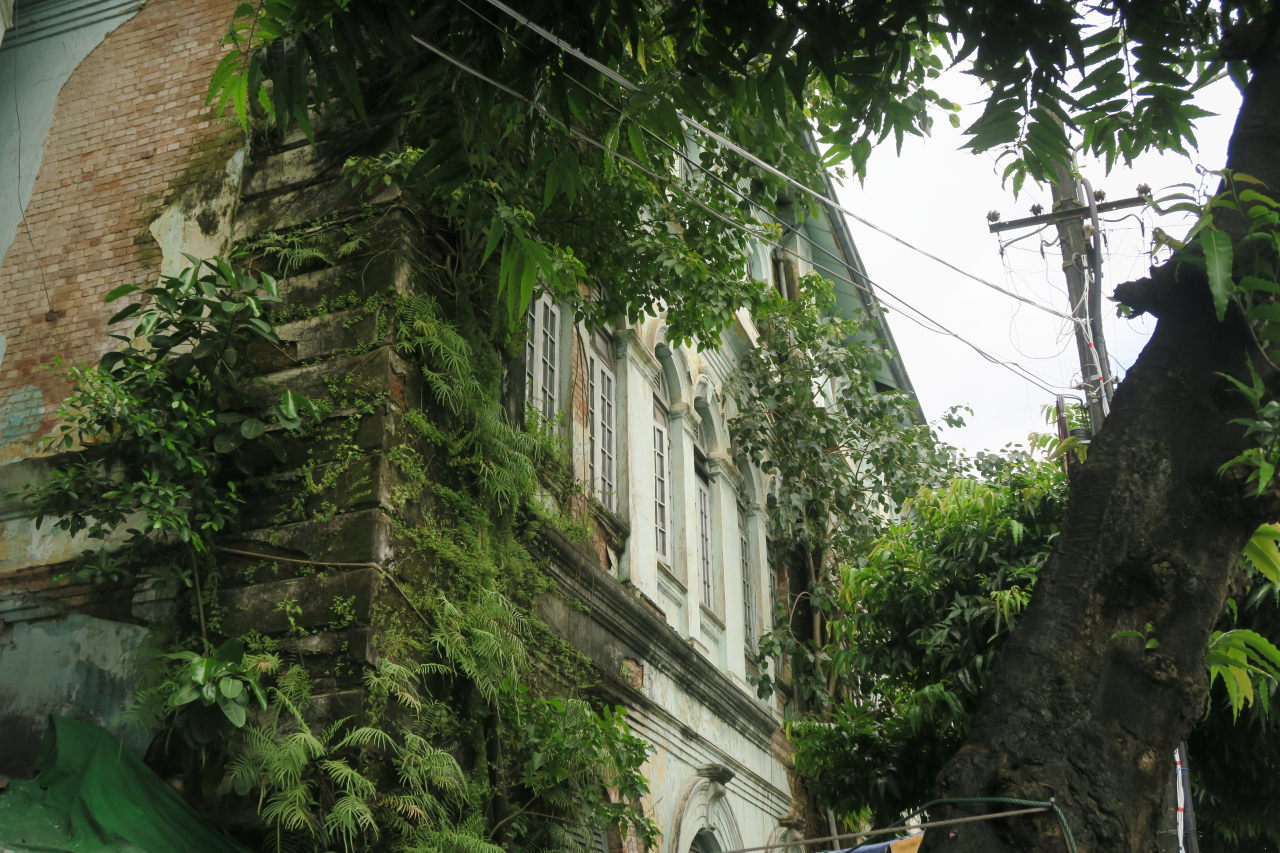 La végétation reprends ses droits sur un batiment à Yangon