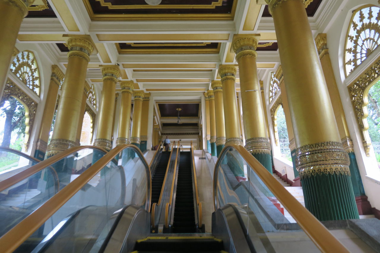 L’entrée est en fait un long escalier – ici, un escalator – vers le haut de la colline