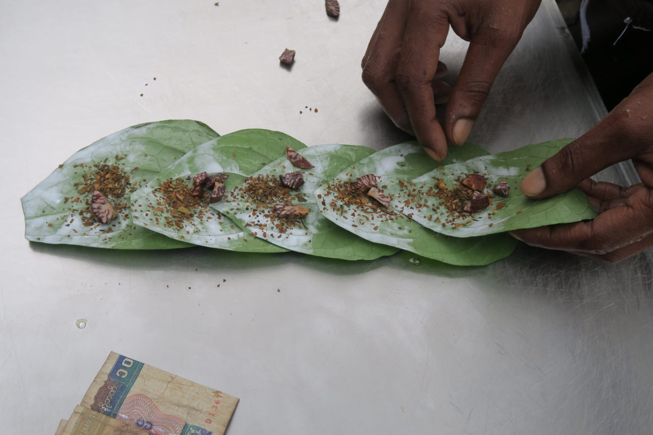 Atelier de préparation du betel, chique locale de tabac