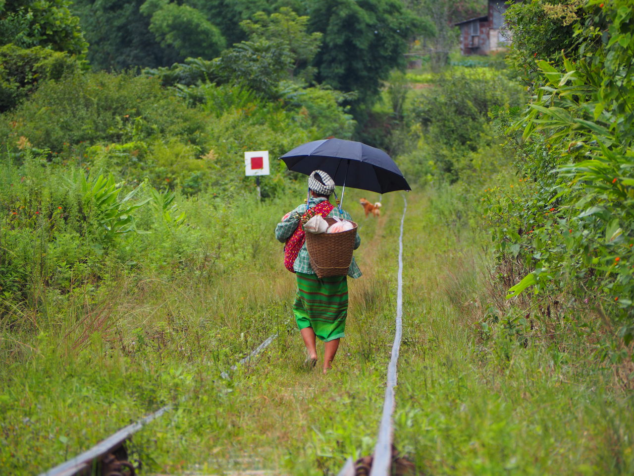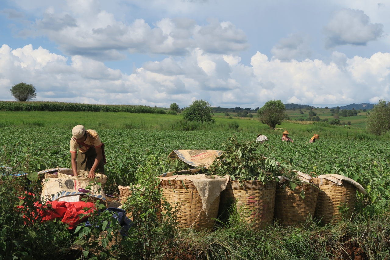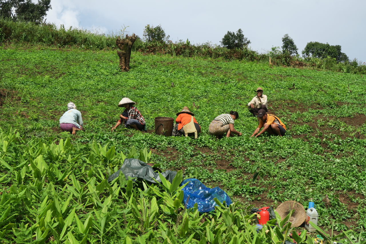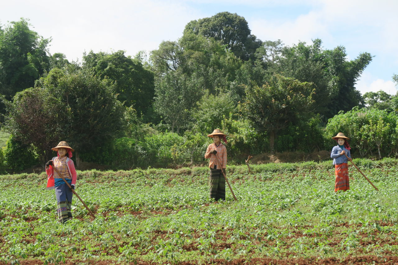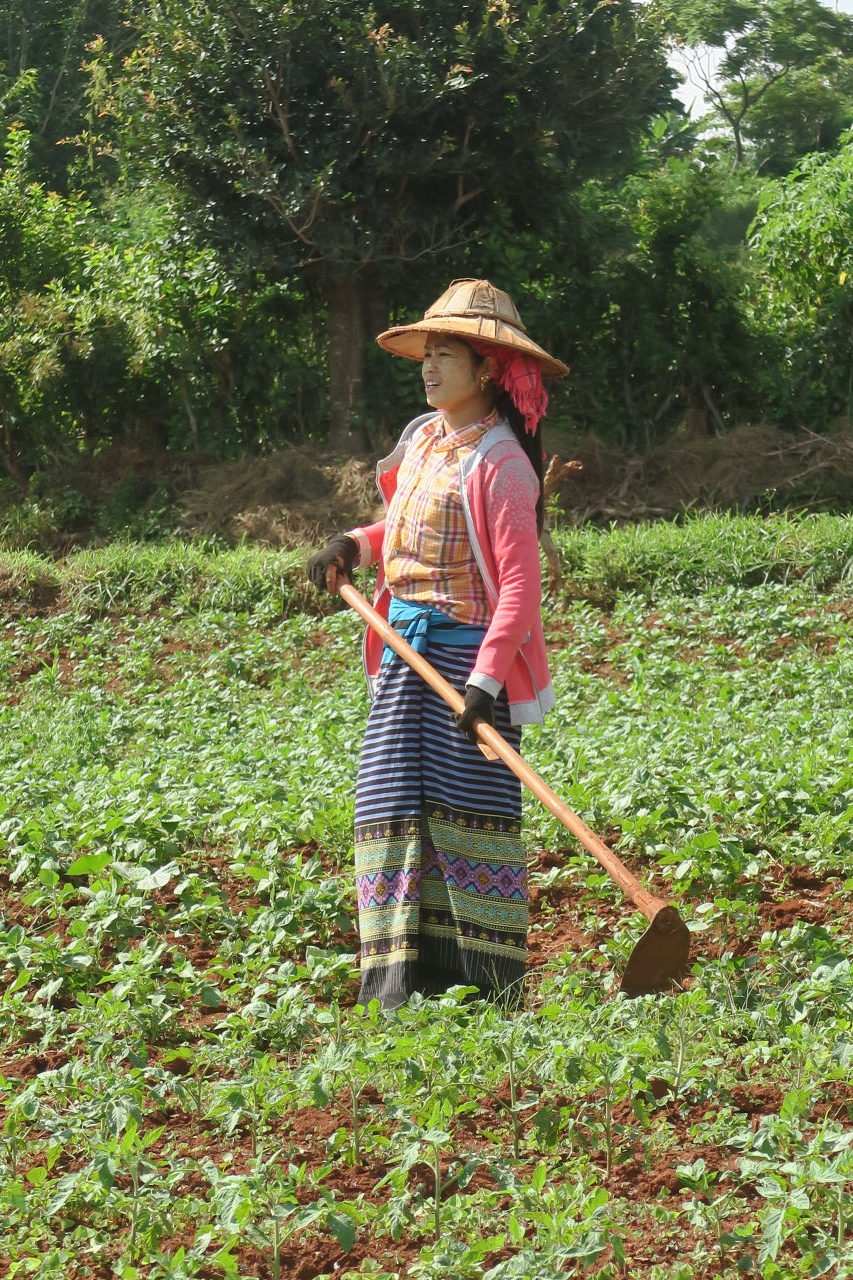 Une paysanne Pa-O dans son champs, à l’abris du soleil