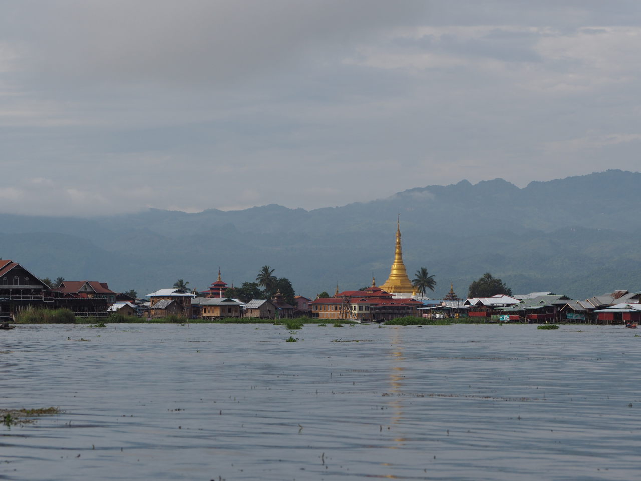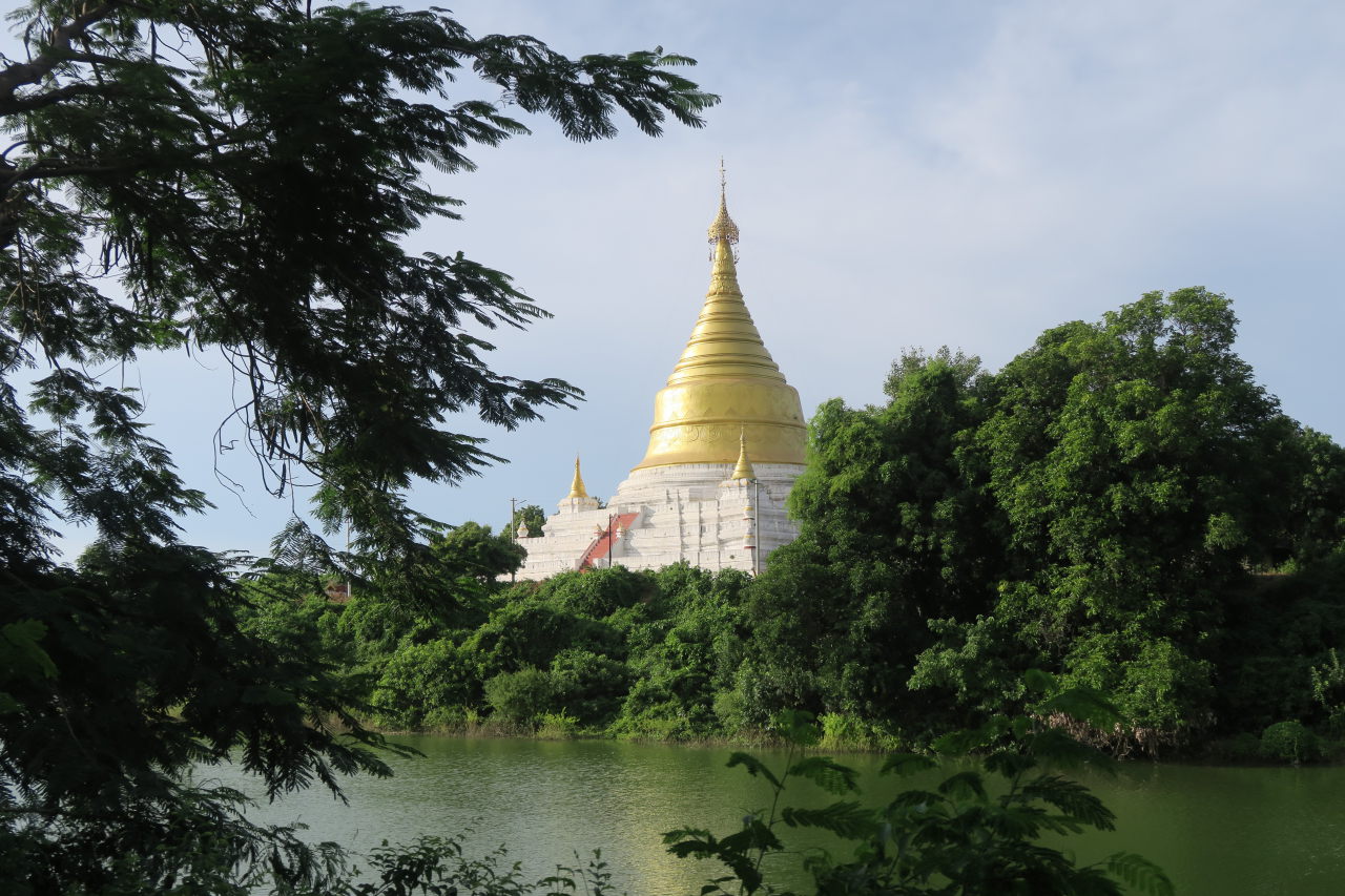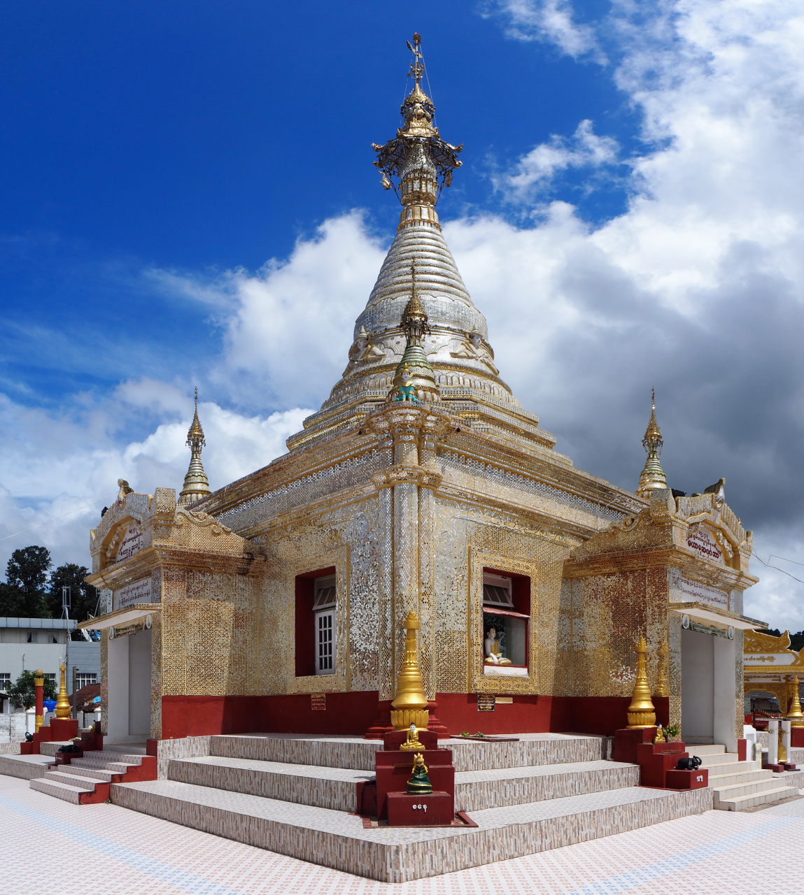 Une stupa dorée au loin
