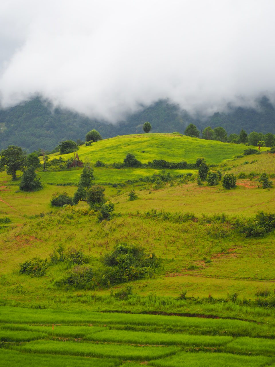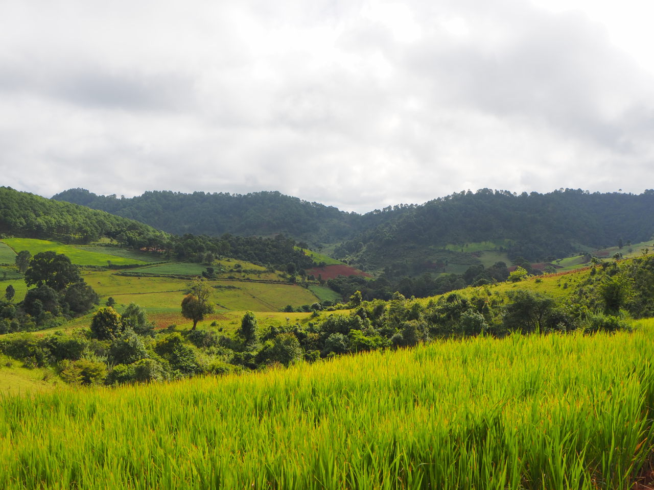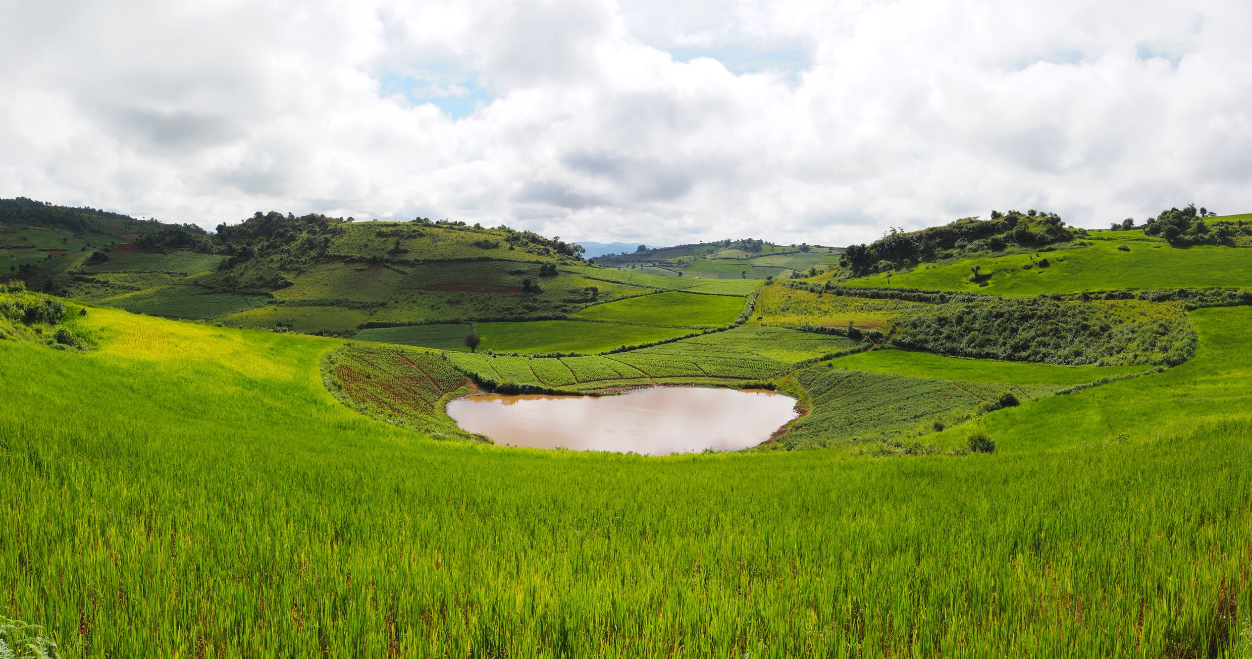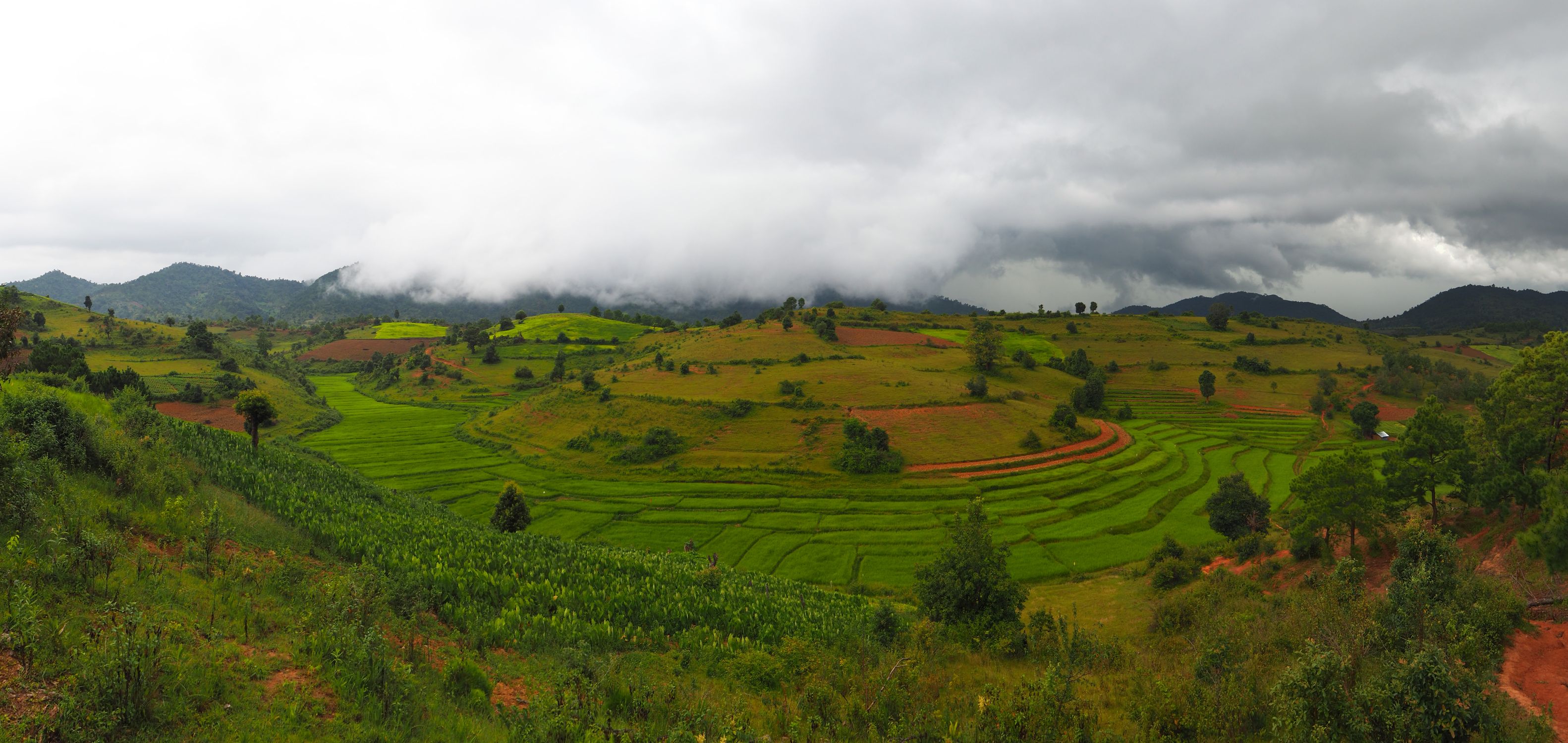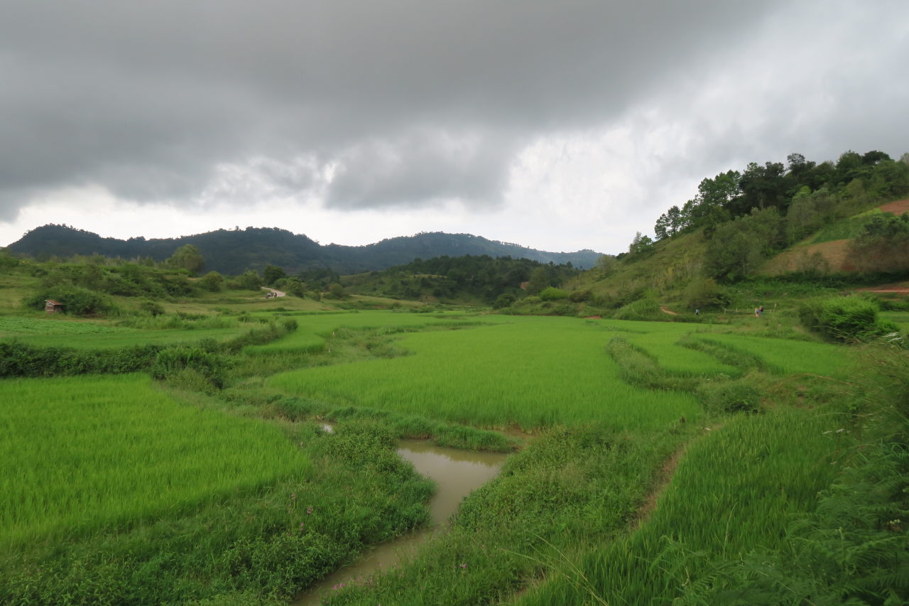 Rizières et ciel menaçant
