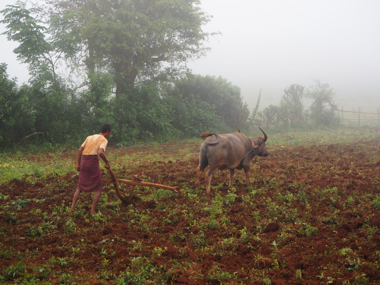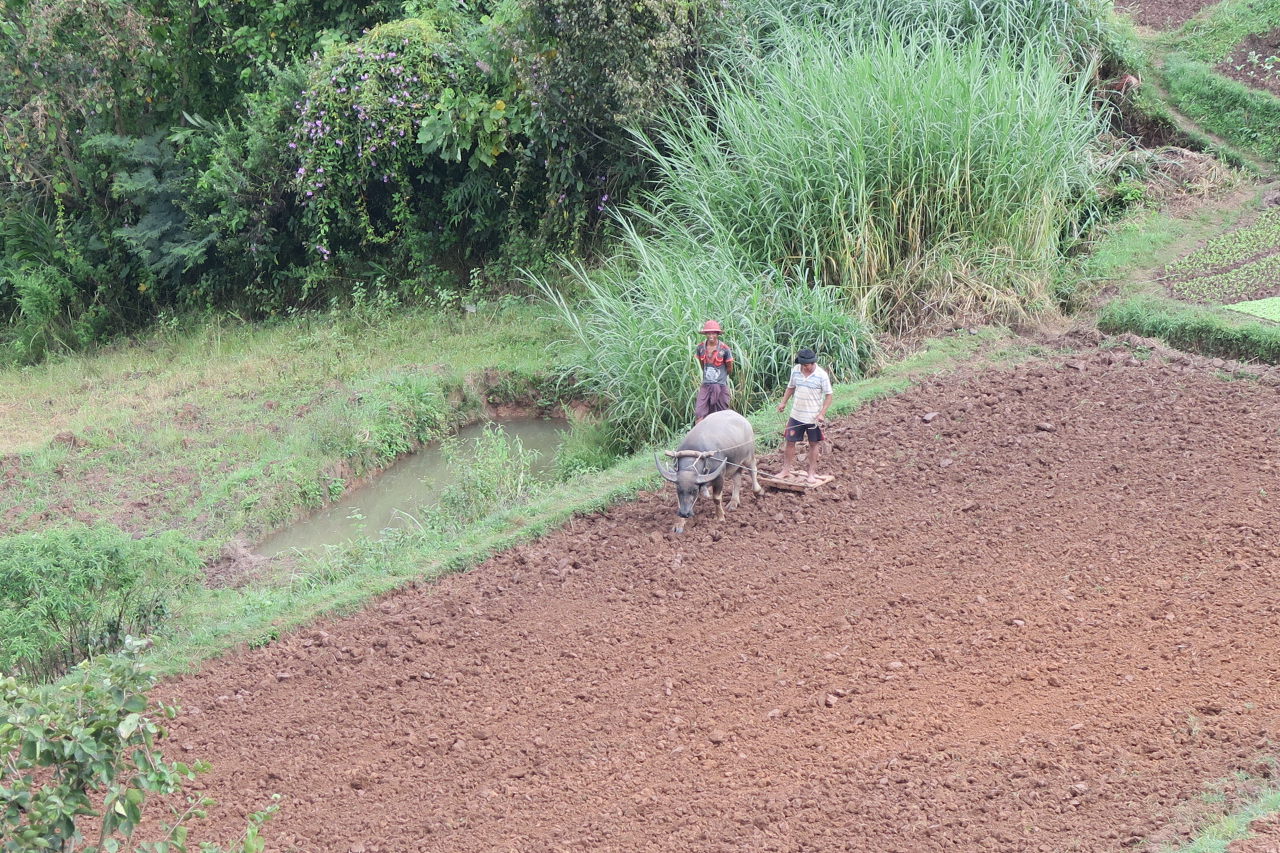 Paysans préparant la terre avec leur buffle