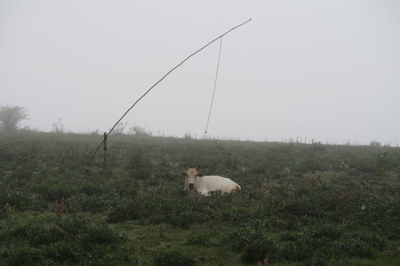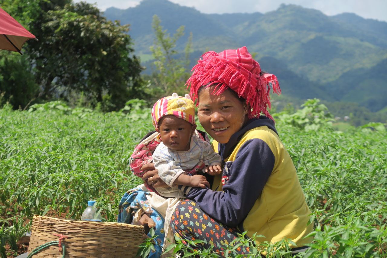Une amie de notre guide, et sa fille. La mère travaille aux champs pendant que l’enfant dort allongé à coté d’elle