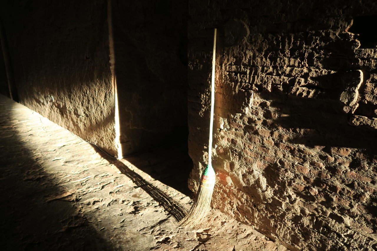 Une mère Pa-O qui balaie devant sa porte