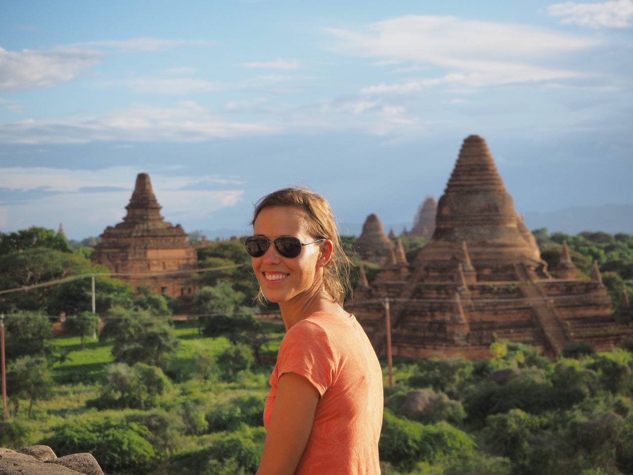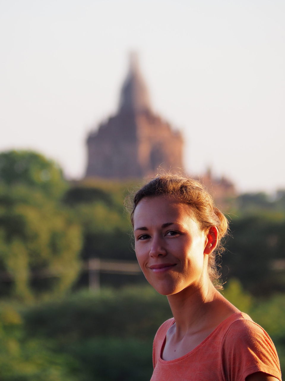 Elise contemplative devant les pagodes