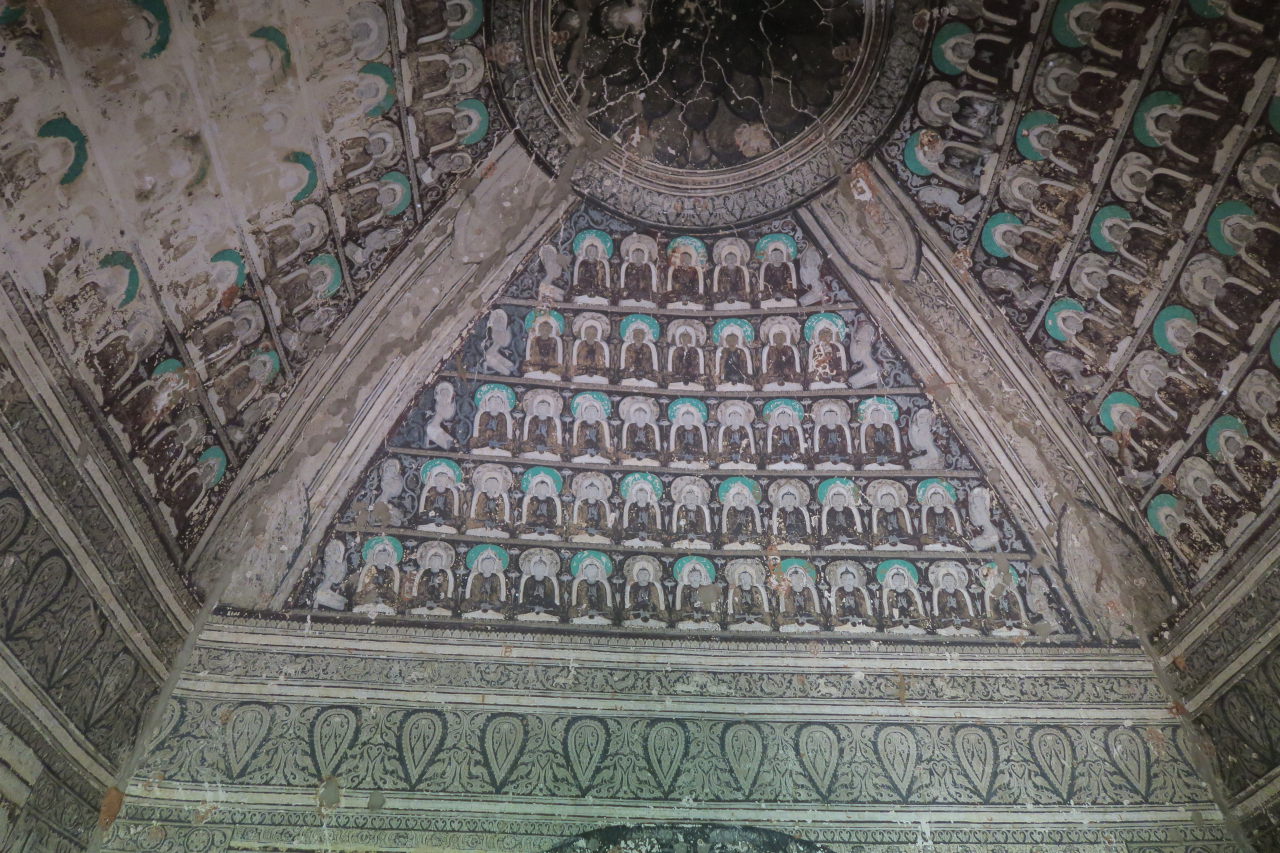 Détail des sculptures de Buddha sur les murs des grottes