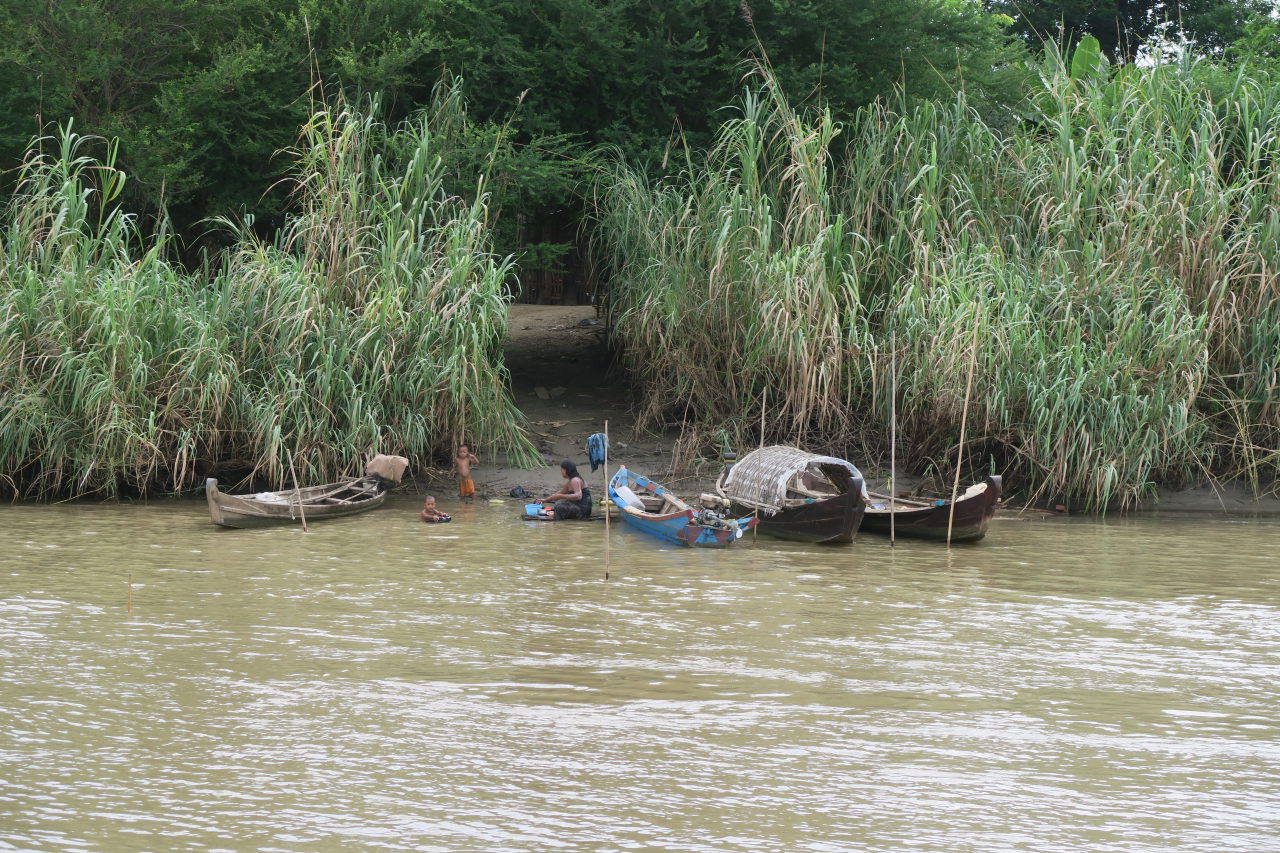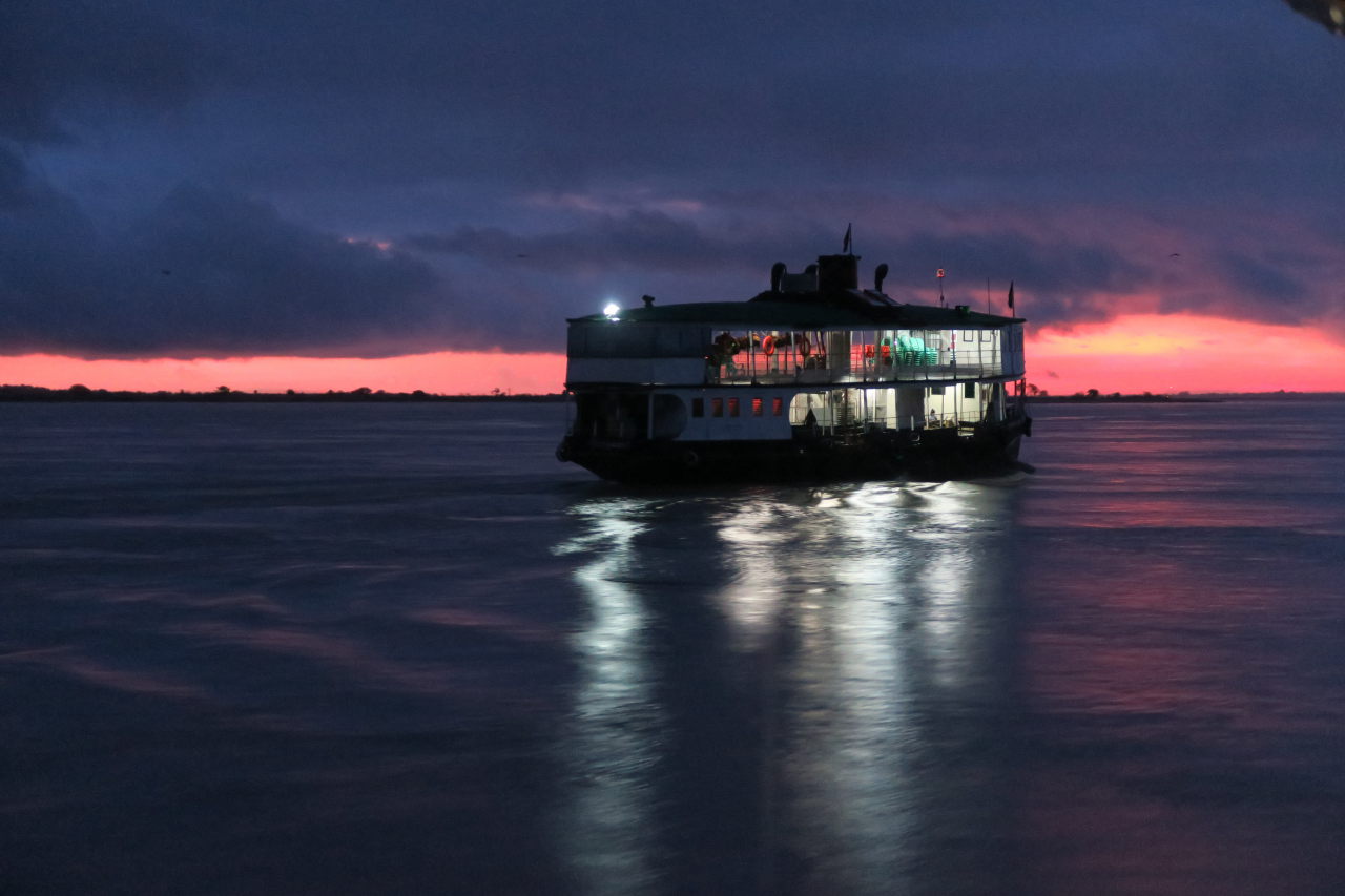 Bateau sur le fleuve Irrawaddy au petit matin