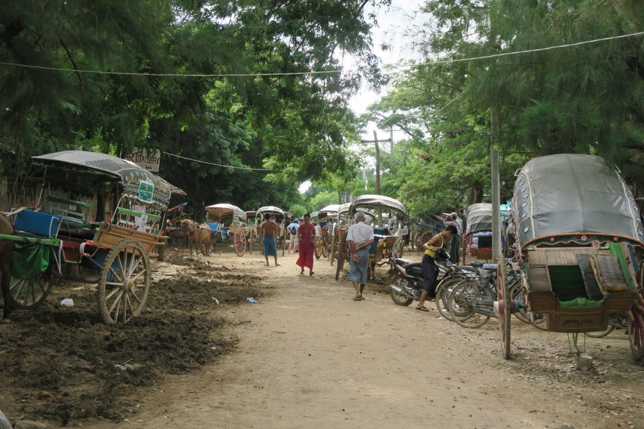 De nombreuses calèches attendent les touristes à Inwa