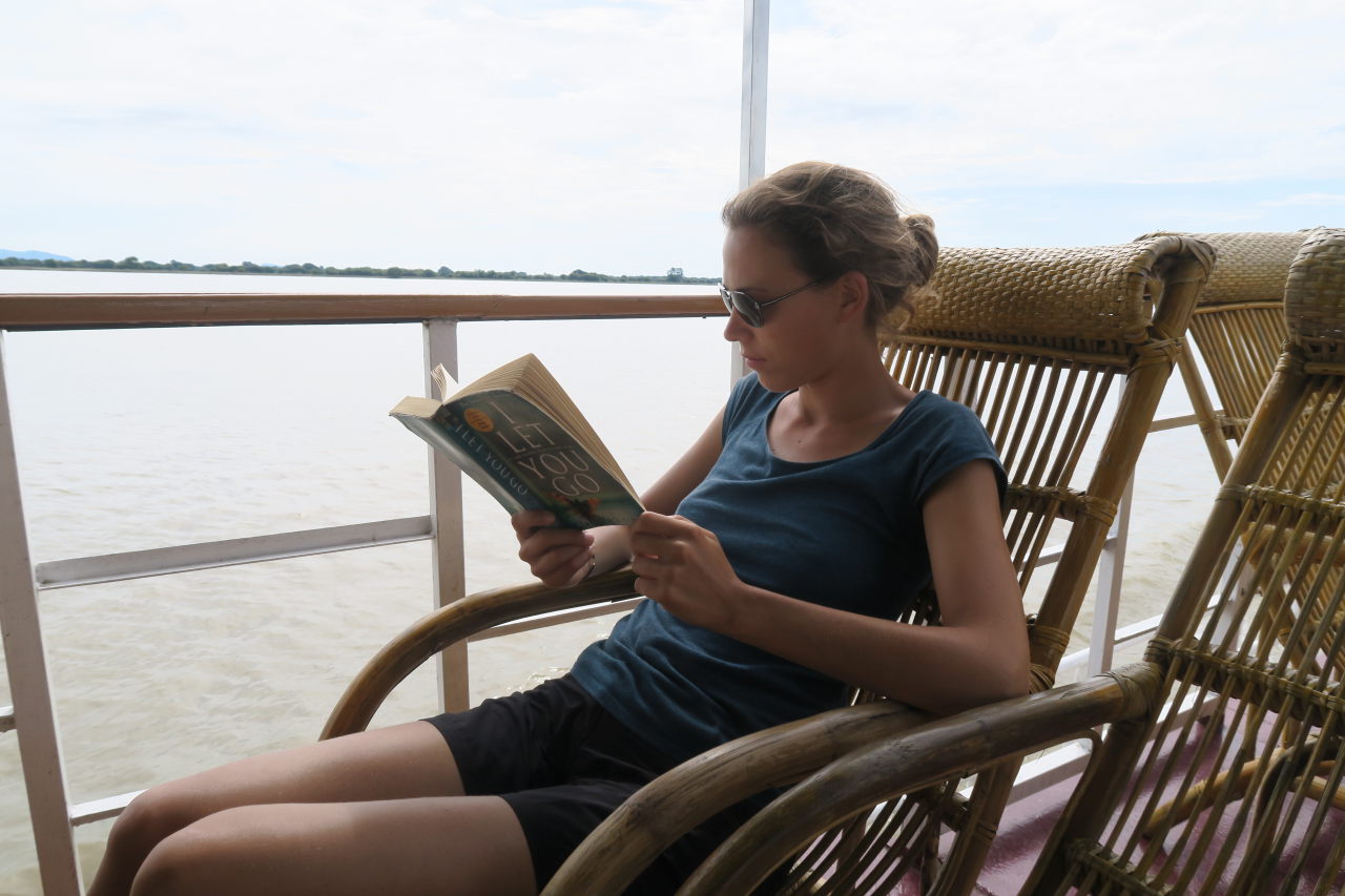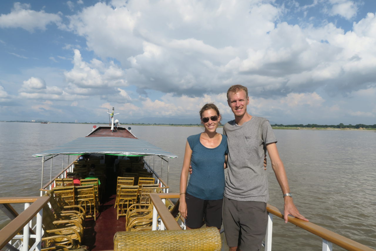 Ju et Li sur le bateau entre Bagan et Mandalay