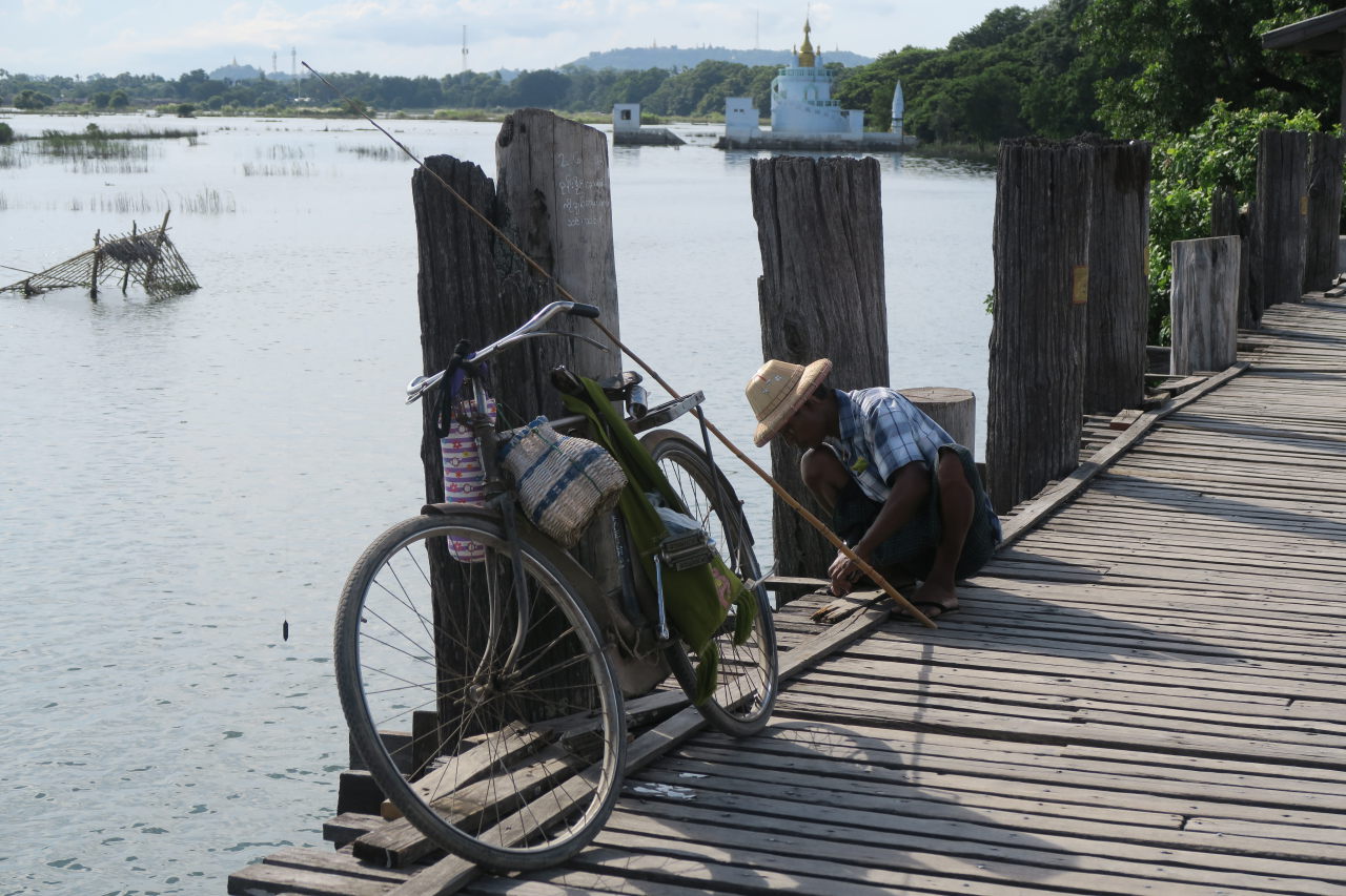 Un pêcheur sur pont U-Bein. Pas sous l’eau celui-là !