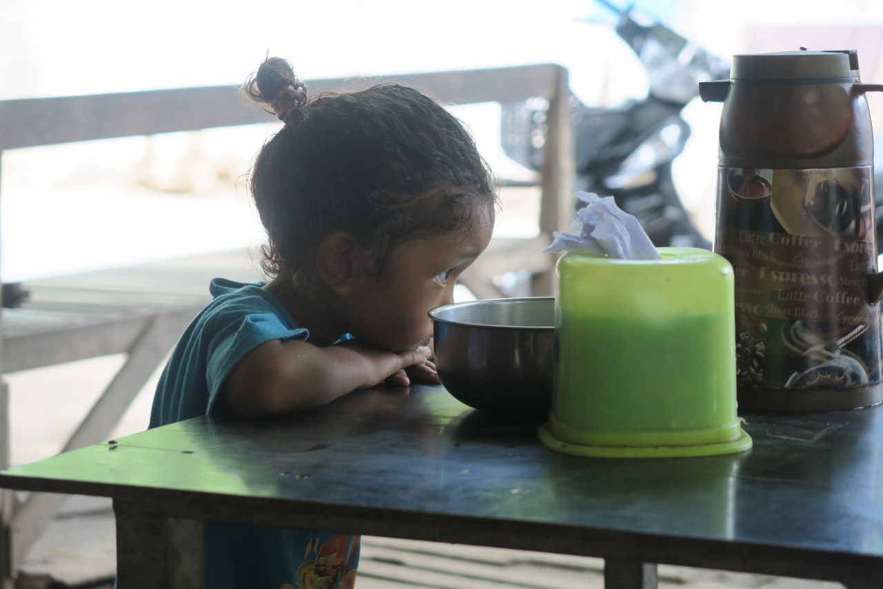 Une petite fille toute mignonne dans un bouiboui à Amarapura