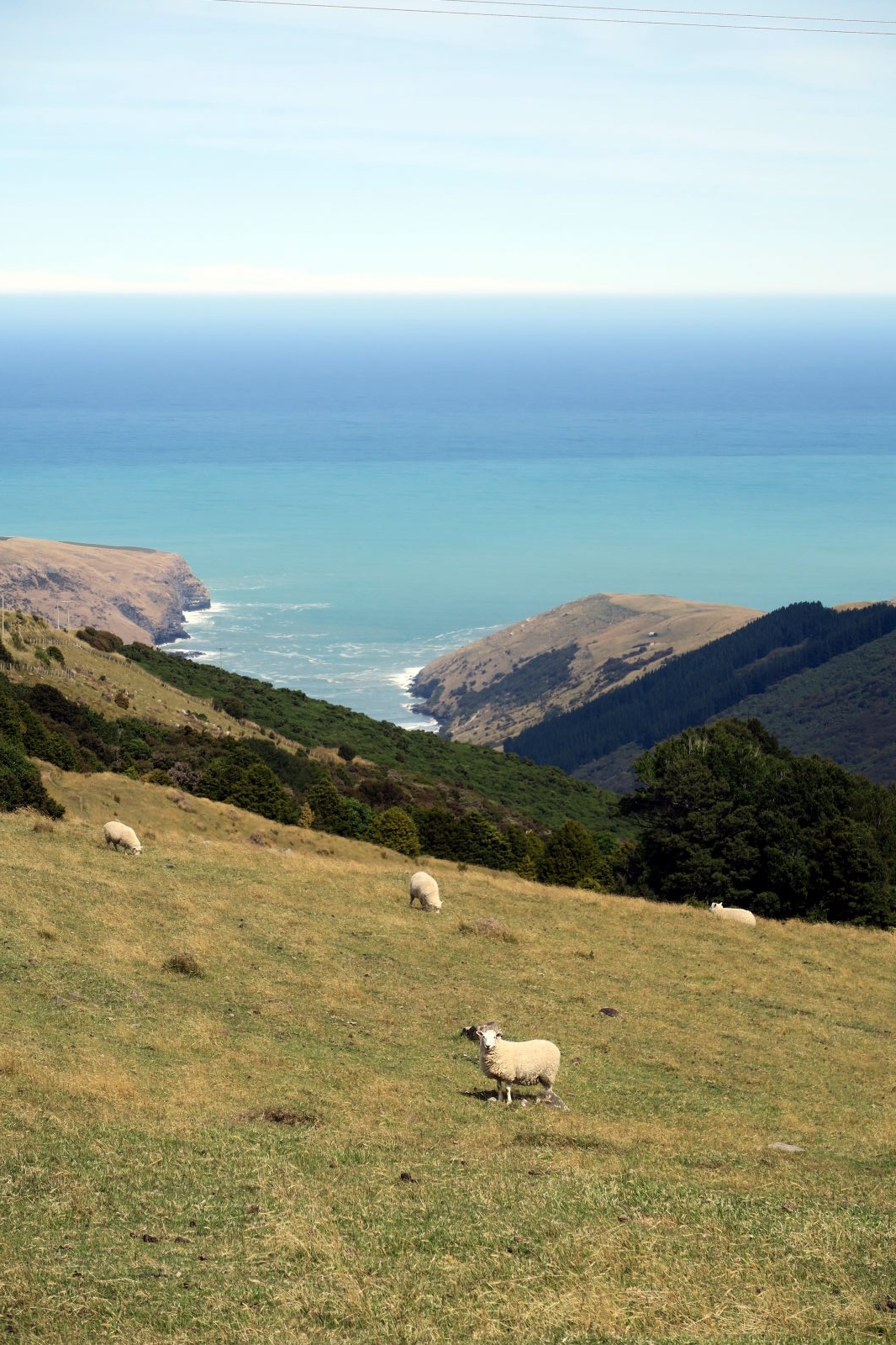 Panorama sur les montagnes et l’océan pacifique, péninsule de Banks