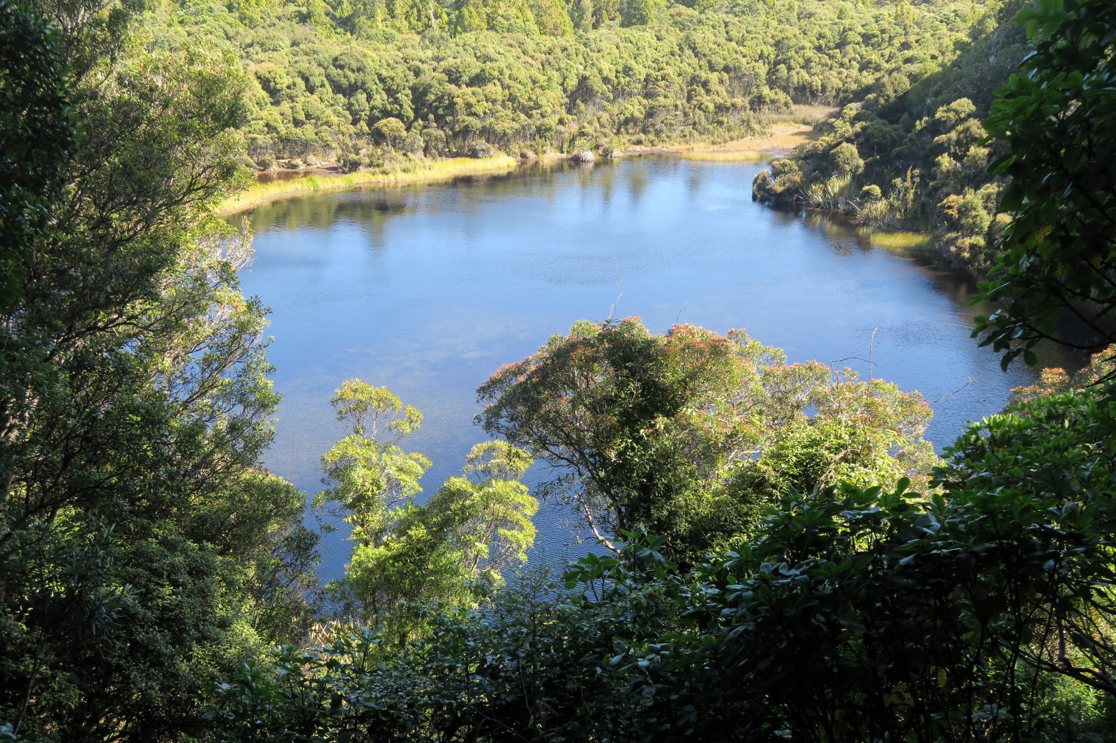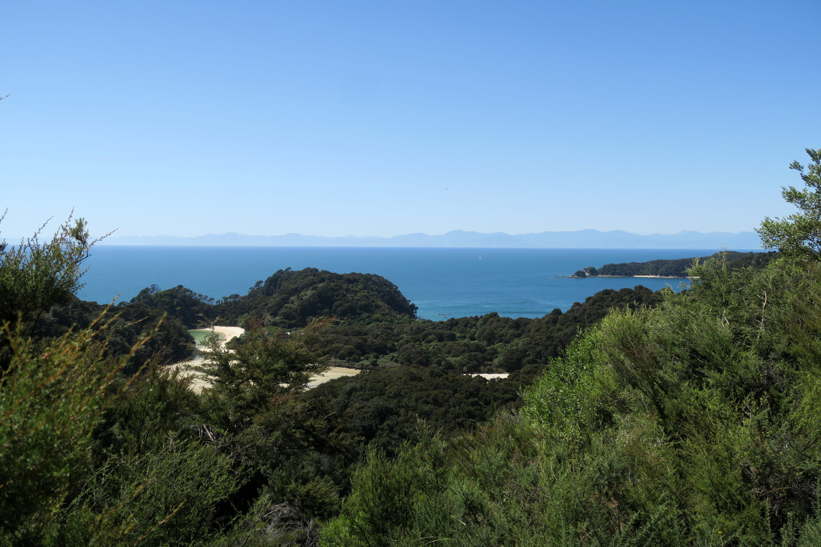 Vue sur l’océan pacifique qui remonte à l’intérieur de la péninsule de Banks