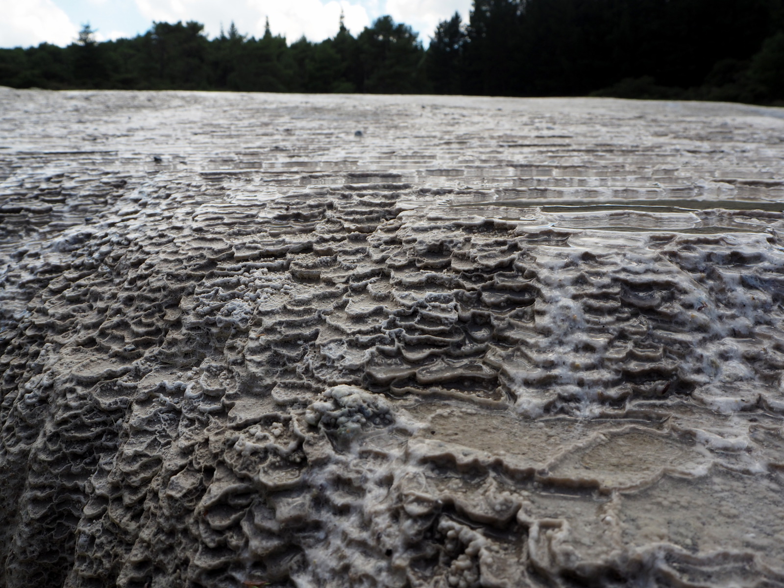 Détail de la « primrose terrace » ou la silice présente dans les eau thermales vient se déposer en terrasses