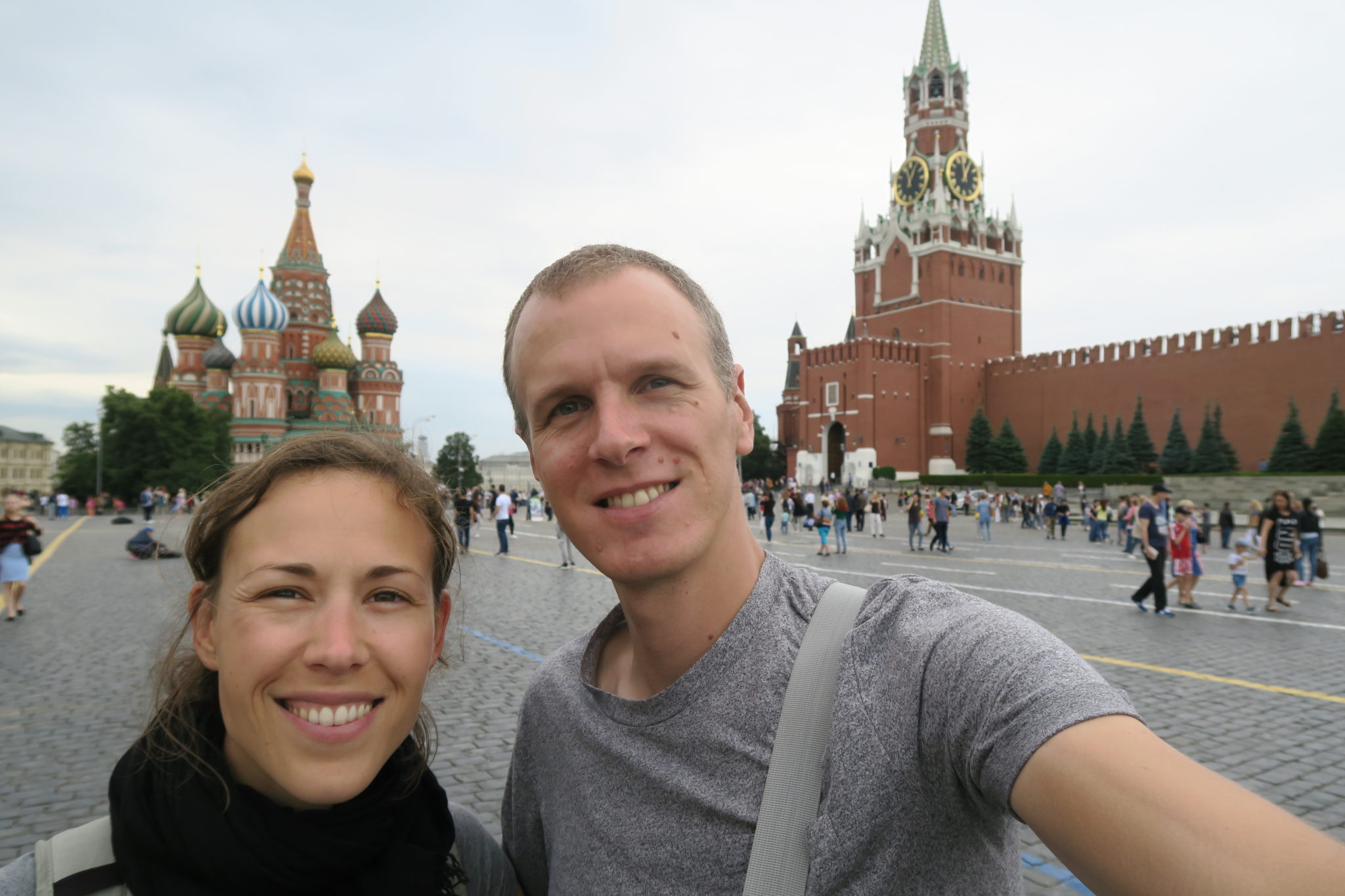 Après quelques imbroglios sur l’enregistrement de nos visas (Google translate à la rescousse), on est parti découvrir la ville sous un ciel très menaçant puis une pluie bien trempante, en commençant par la place rouge, emblème de la ville, et qui est magnifique.