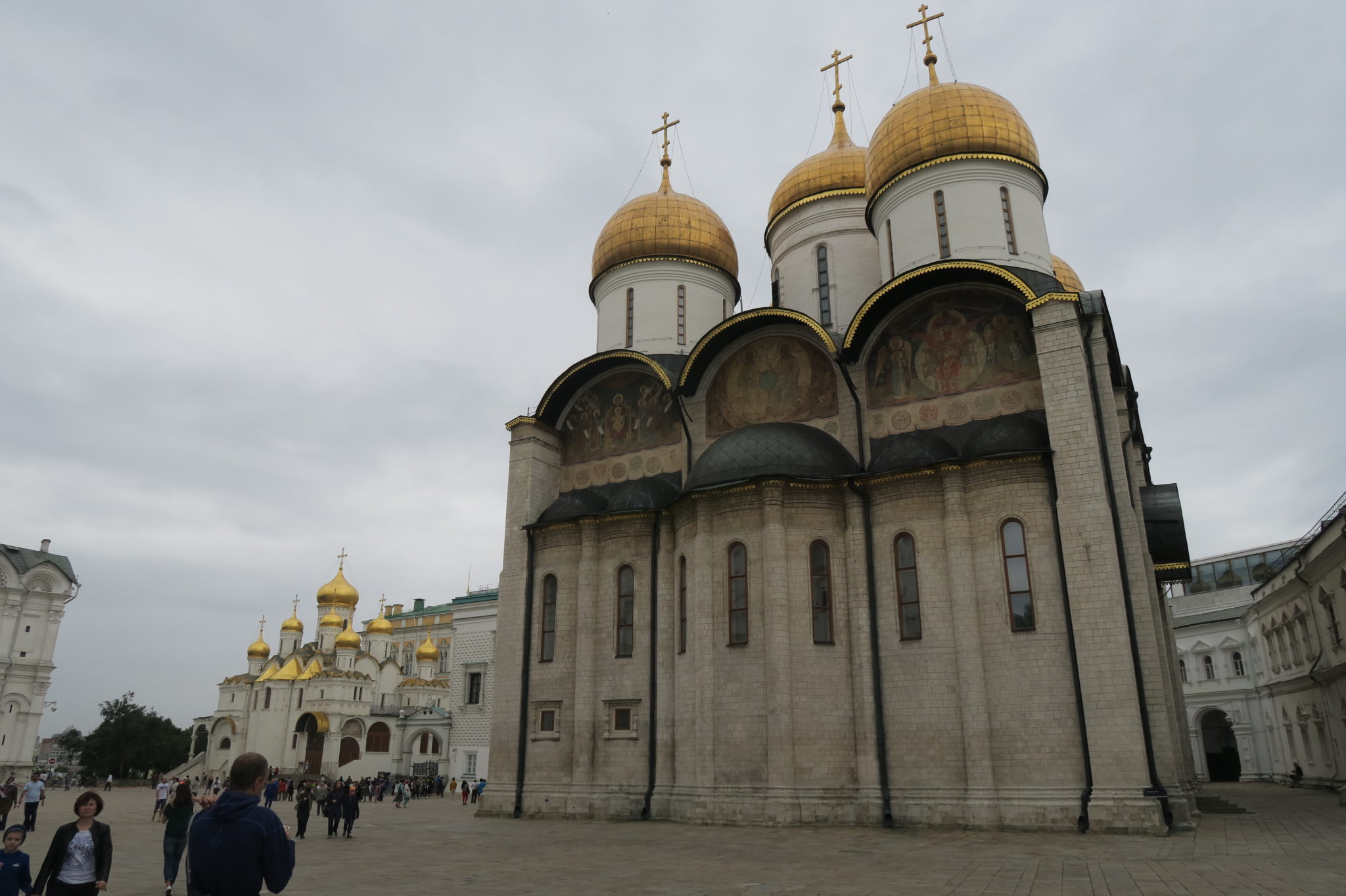 Une forteresse aux fameux murs en briques rouges (20 mètres de haut tout de même), le Kremlin de Moscou abrite le pouvoir Russe (un peu comme l’Elysée en France, ou la maison blanche à Washington), ainsi que quatre églises (certaines sont toutes petites !), la plus grande cloche (on dit « maître-bourdon ») du monde et un musée notamment avec une collection de diamants (un peu comme les bijoux de la couronne à Londres). Et ici les agents ne rigolent pas en ce qui concerne les déplacements… inutiles de sortir des chemins, on a vu des chinois se faire houspiller bien gaiement (« hey Chinatown ! », provoquant l’hilarité d’un groupe de touristes Russes, visiblement jamais en manque de blagues limites).
