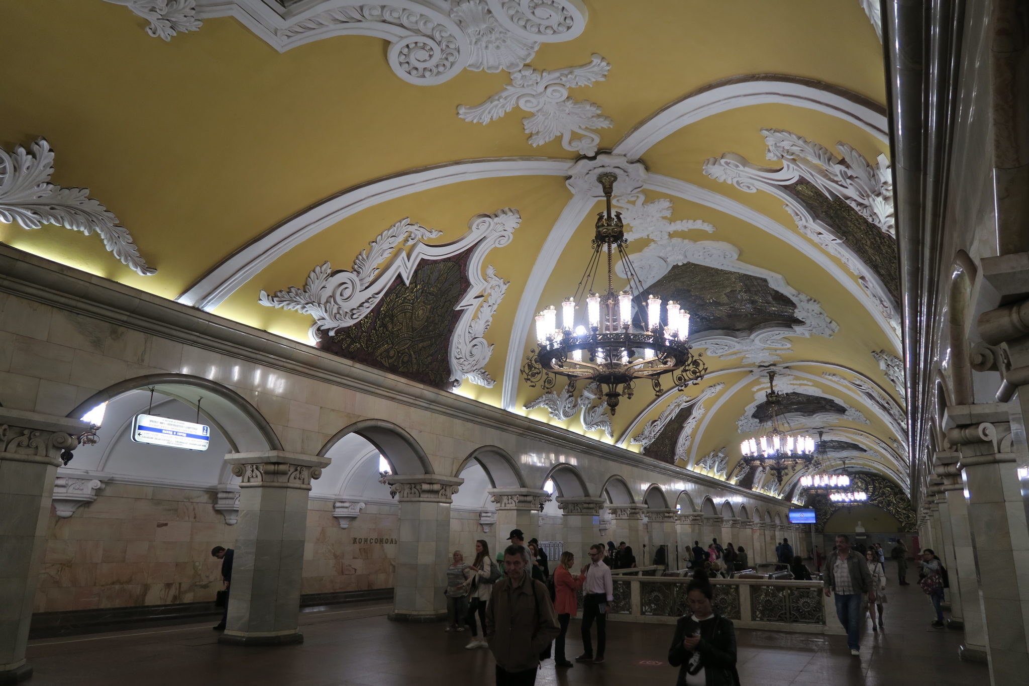 Premier contact avec Moscou : « Ah tiens, y’a pas la traduction en anglais ici ». Et oui, on s’était habitué, dans le métro de Saint-Petersbourg, à avoir les traductions sur les panneaux. La faut déchiffrer le cyrillique. On choisit un guichet « english spoken ». Niet. On prends quand même nos billets, et on file vers notre auberge. Là-bas aussi, l’english, c’est niet.