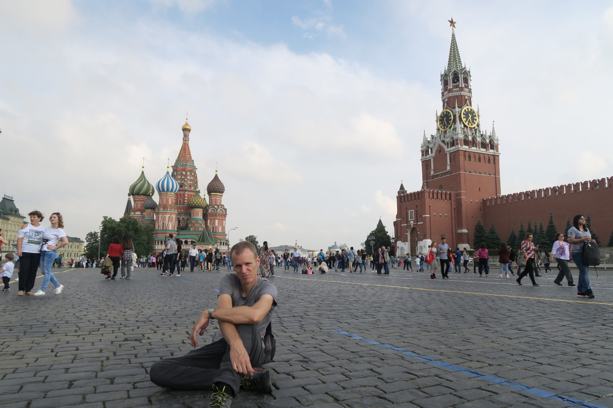 Finalement, la pluie a cessé dans l’après-midi du deuxième jour, ce qui nous a permis de nous promener dans la ville, de découvrir de nouveaux bâtiments (Cathédrale du Christ le Sauveur, le théâtre Bolchoi, la place de la révolution) et de retourner sur la place rouge pour d’inoubliables selfies. En voici un de Julien imitant la pose que la grosse majorité des gens se trouvant autour de nous à ce moment là faisait, risible ! (d’ailleurs, c’est une nouvelle mode de s’asseoir par terre pour faire une photo ? ?).