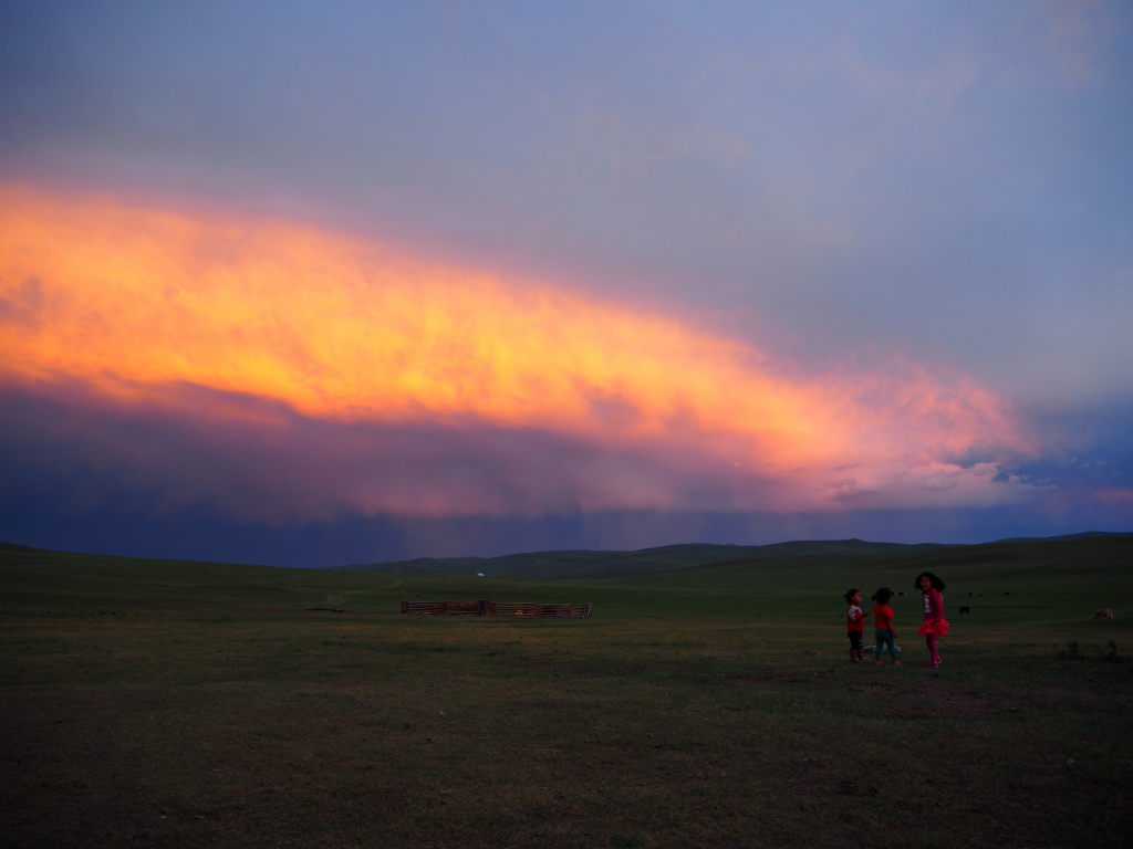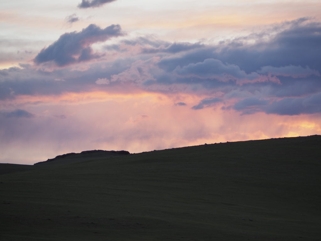 Nous faisons donc connaissance avec la femme et des enfants, Baldan (le mari) n’est pas la car il est parti chercher des poulains qui n’ont pas suivi le bon troupeau dans la steppe. Nous ne savons pas trop comment nous comporter. Puis nous préparons le déjeuner avec Chimgee. L’après-midi nous nous promenons sur les collines environnantes. Le calme et la beautée du paysage sont très ressourçant, mais le fait d’avoir un guide constamment avec nous est un peu déstabilisant… En fin d’après-midi l’orage gronde, il commence à pleuvoir.