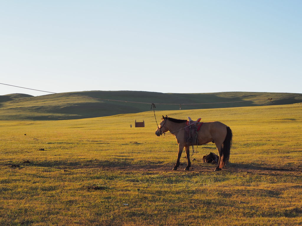Notre famille ne se trouve pas très loin d’Oulan-Bator (une heure de route environ), mais déjà les paysages sont impressionnants. Ayant changé d’emplacement 3 jours auparavant pour leur pâturage, la femme de la famille avait donné rendez-vous au conducteur près de l’unique route centrale afin de nous emmener au camp. Il nous a fallu deux arrêts et plusieurs coups de téléphone pour se retrouver dans cette steppe, tellement grande… c’est magnifique.