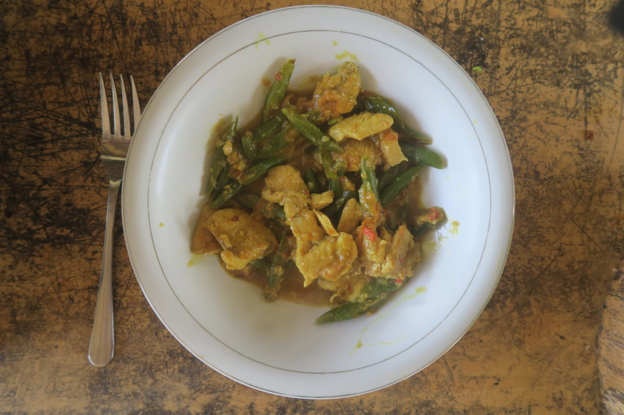 Poulet sauté avec des légumes et une sauce épicée balinaise. Simple et bon.
