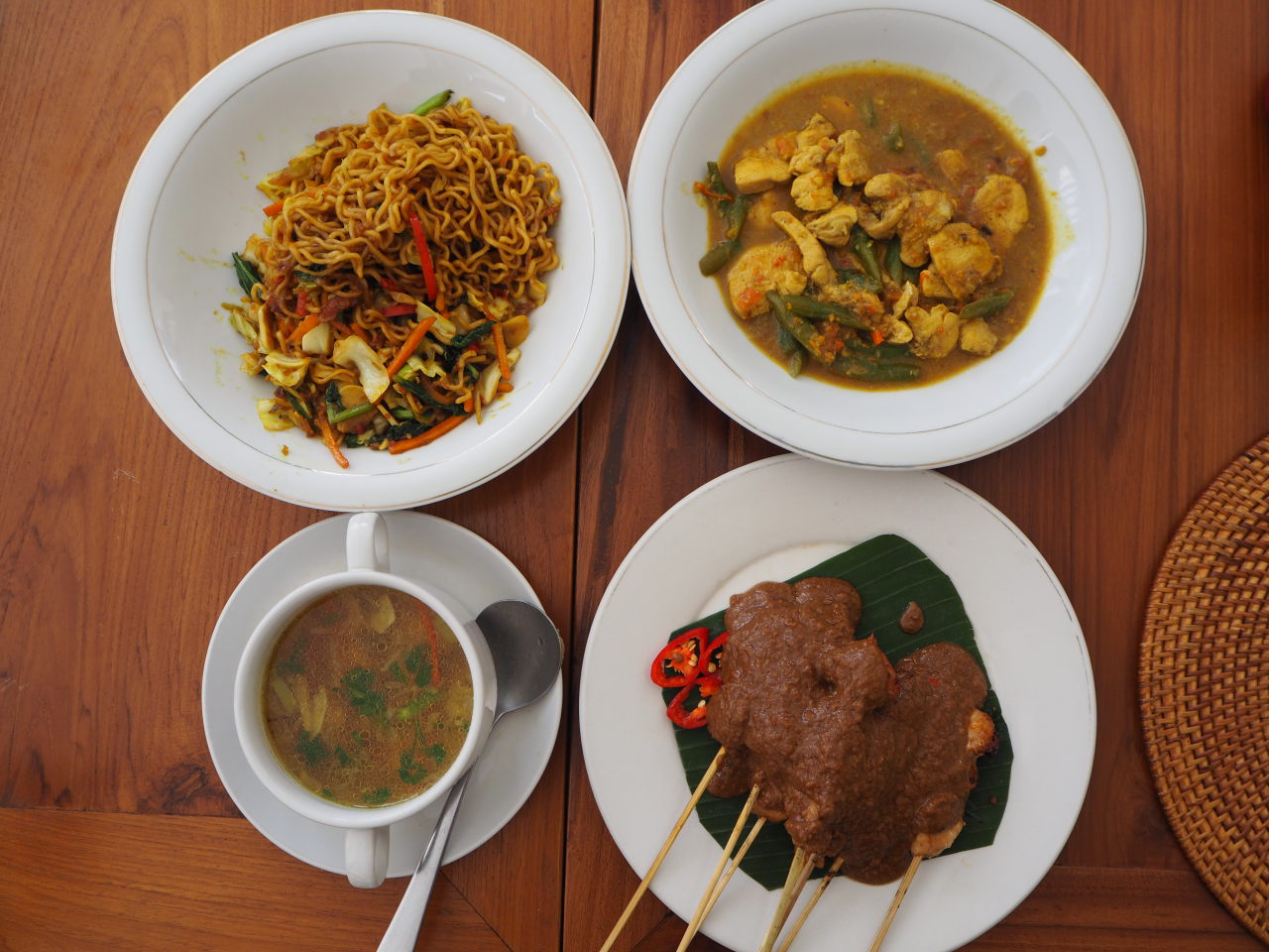 Ce sont des nouilles chinoises (comme celle que l’on retrouve dans les soupe instantanées chinoises d’ailleurs), sautées avec des légumes et une sauce. On appelle ce plat aussi mie goreng et on le retrouve partout dans tous les Warungs (restaurants locaux). C’est un peu un plat de base.