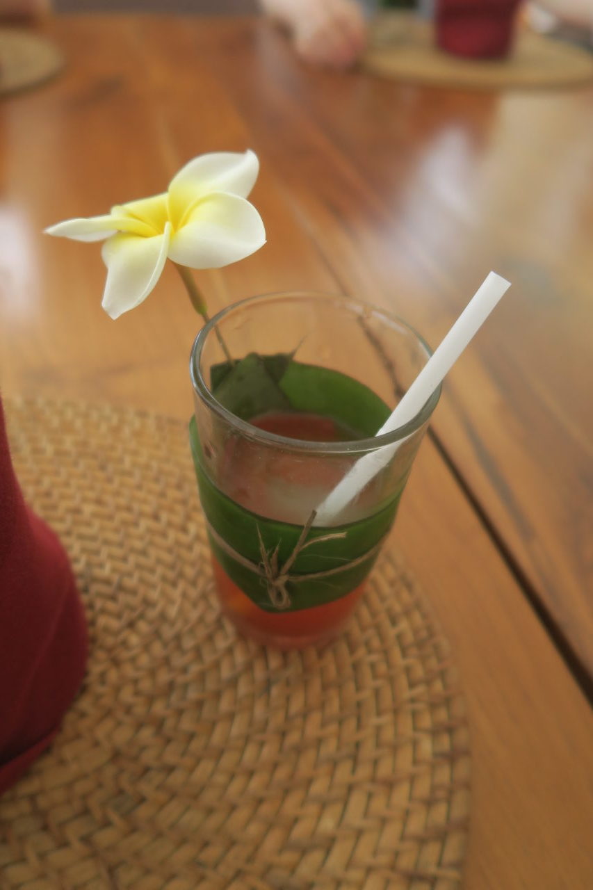 C’est pas moins de six plats balinais qui nous attendent ! Un petit thé glacé au gingembre pour commencer et on y va !