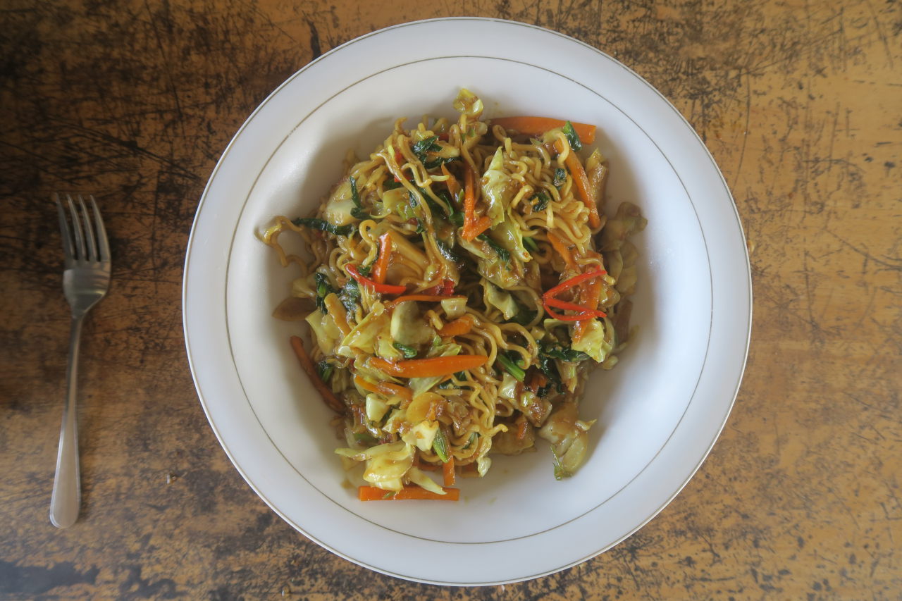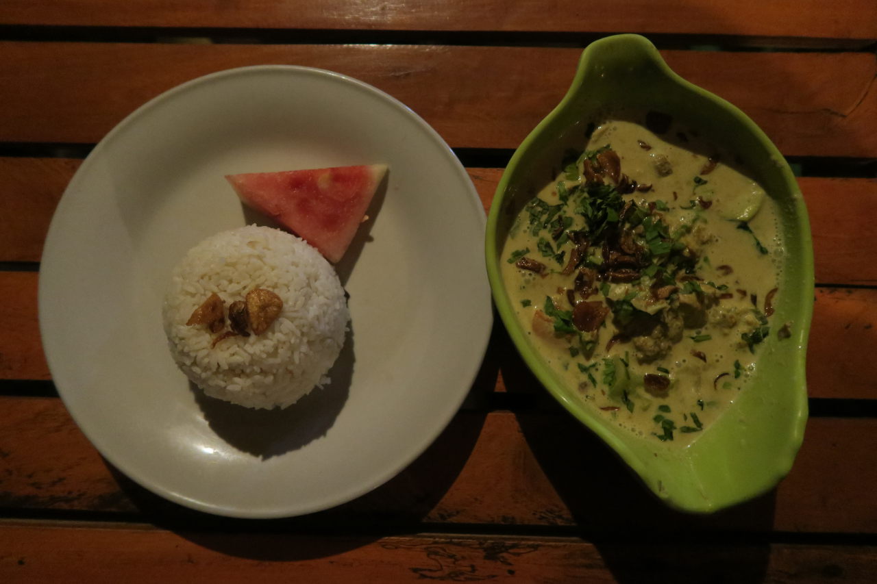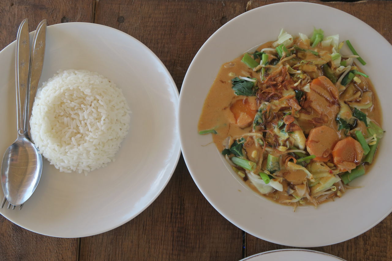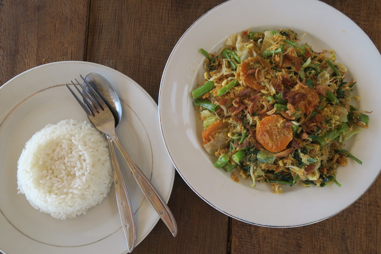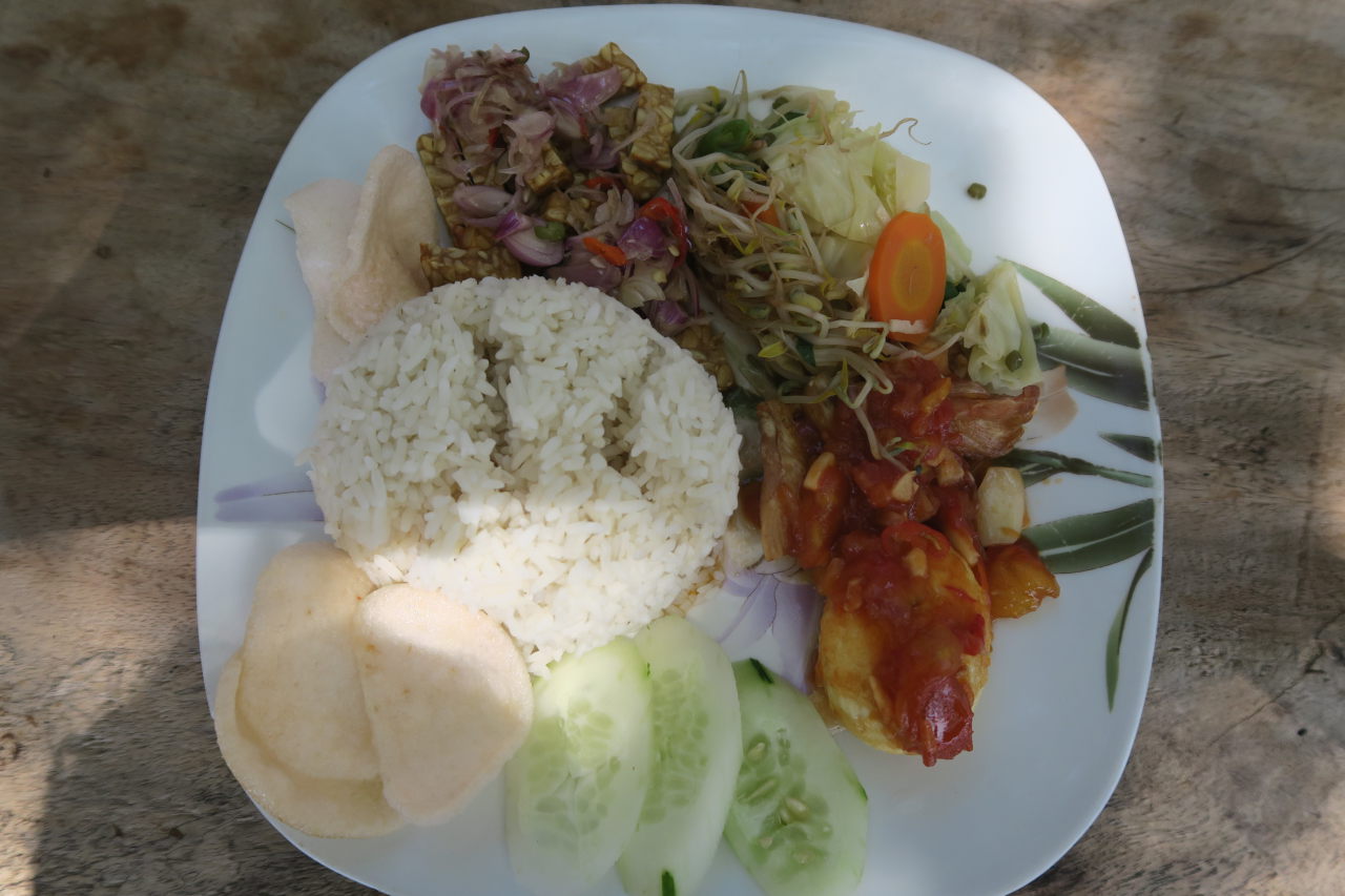 Nous avons surtout expérimenté la cuisine de Bali et de Lombok. Ici le riz constitue la base des repas. Même avec des nouilles les Balinais mangent du riz !