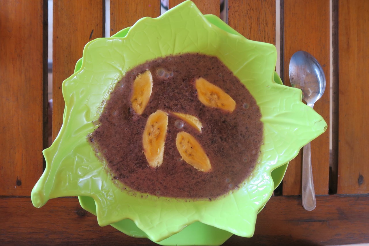 Riz noir cuit dans le lait de coco, et servi dans une coupelle avec quelques lamelles de fruits frais. En Indonésie il est servi au petit-déjeuner mais les touristes le prennent souvent en dessert.