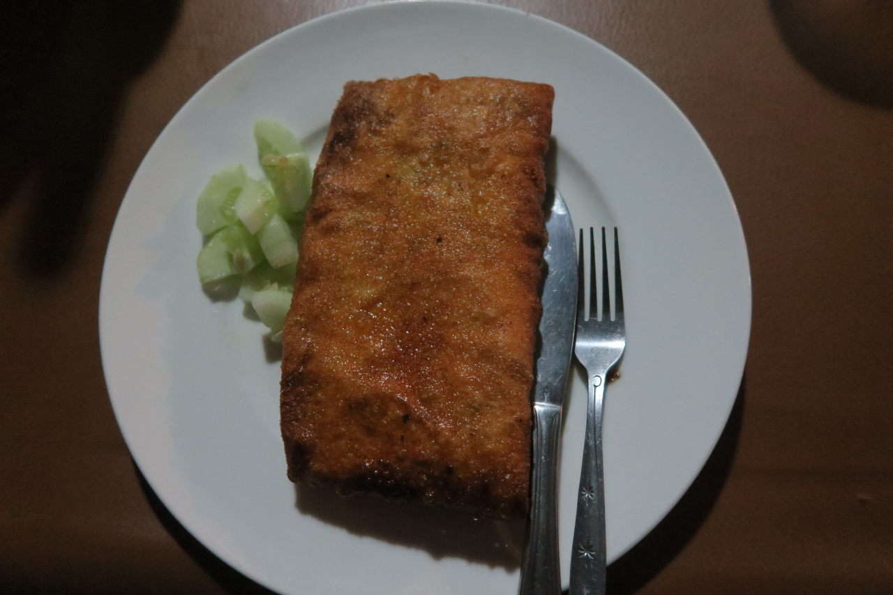 Grosse crêpe à la banane, au chocolat, au banane-chocolat, nature, à l’ananas, bref superbe au petit déjeuner, au gouté ou en dessert ! On n’a pas de photos alors que c’est le plat qu’on a sans doute le plus mangé ! On vous met quand même une photo d’un « scramble pancake ».