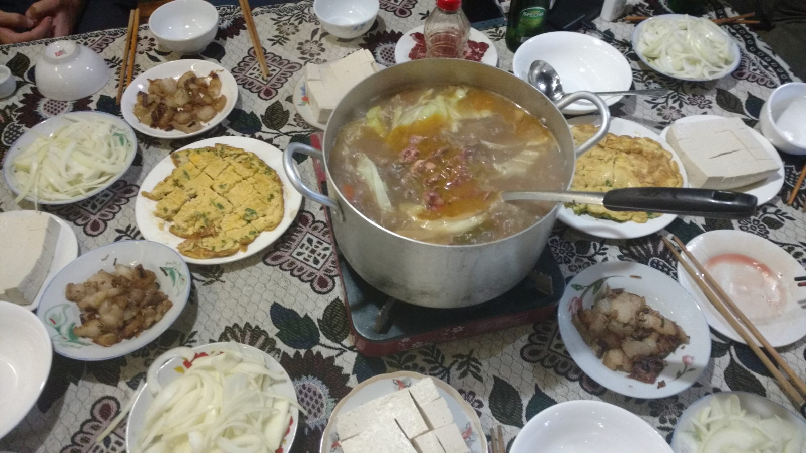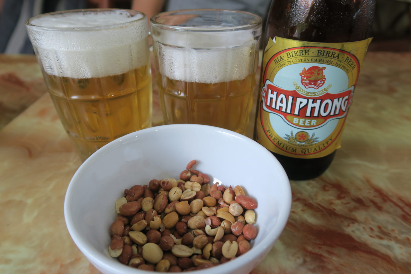Produit à base de céréales, de racines, de fruits mais aussi d’animaux (serpents…), c’est un alcool traditionnel qu’on a surtout rencontré dans le nord. Julien a testé deux variantes : une à base de riz, l’autre à base de banane (était ce bien cela ? Pas sur, mais bien meilleur). Trinquer avec cet alcool est un rituel en lui même, la encore avec des variantes : celle ou tout le monde chante (en comptant) ou celle où le porteur de toast serre la main de l’invité (et en général, tout le monde autour de la table veut te serrer la main, donc c’est parti pour une longue tournée :)
