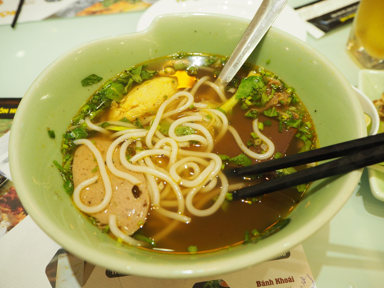 Toujours est-il que nous avons testé certains d’entre eux. L’une des choses les plus frappante est la présence d’herbes/aromates fraîches, partout et tout le temps ! Et il faut bien avouer également que la cuisine vietnamienne est légère (parfois fade du coup), souvent diététique, relativement variée, et peu onéreuse.