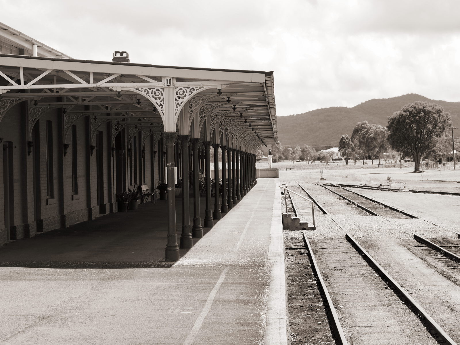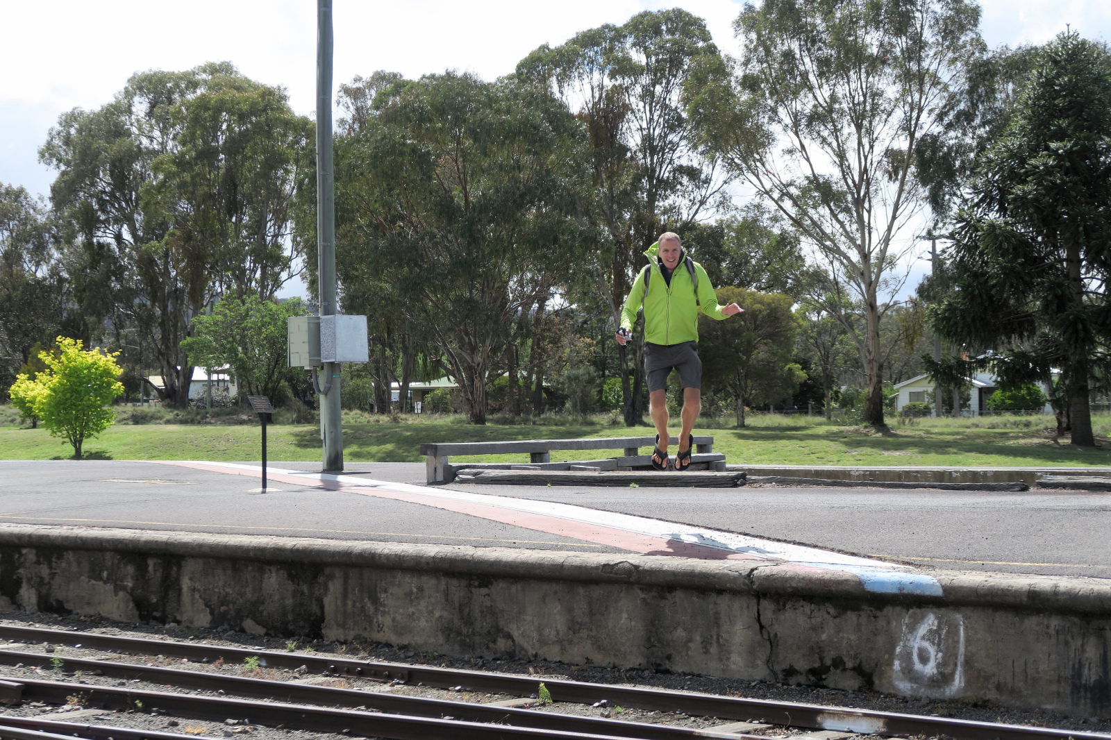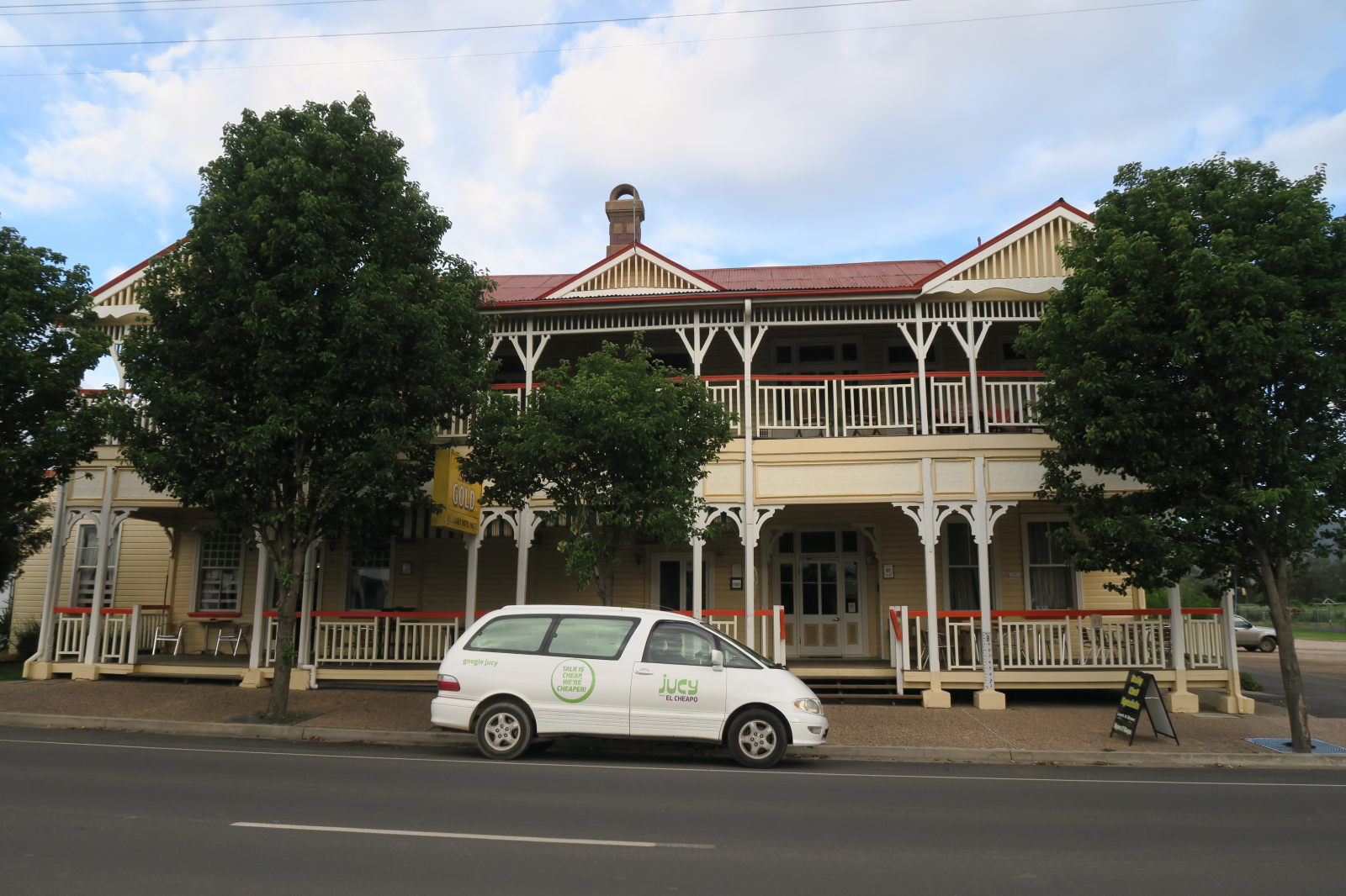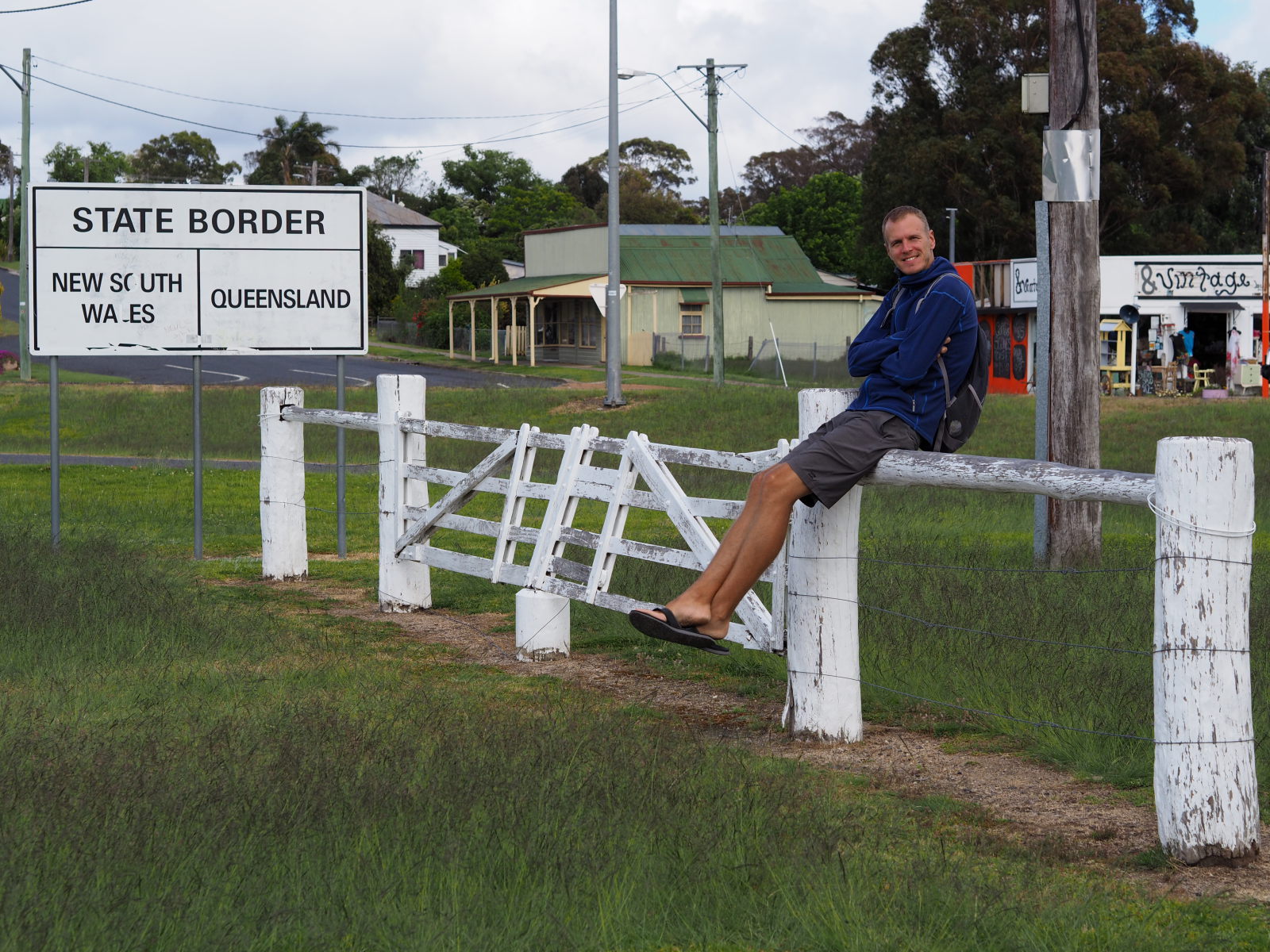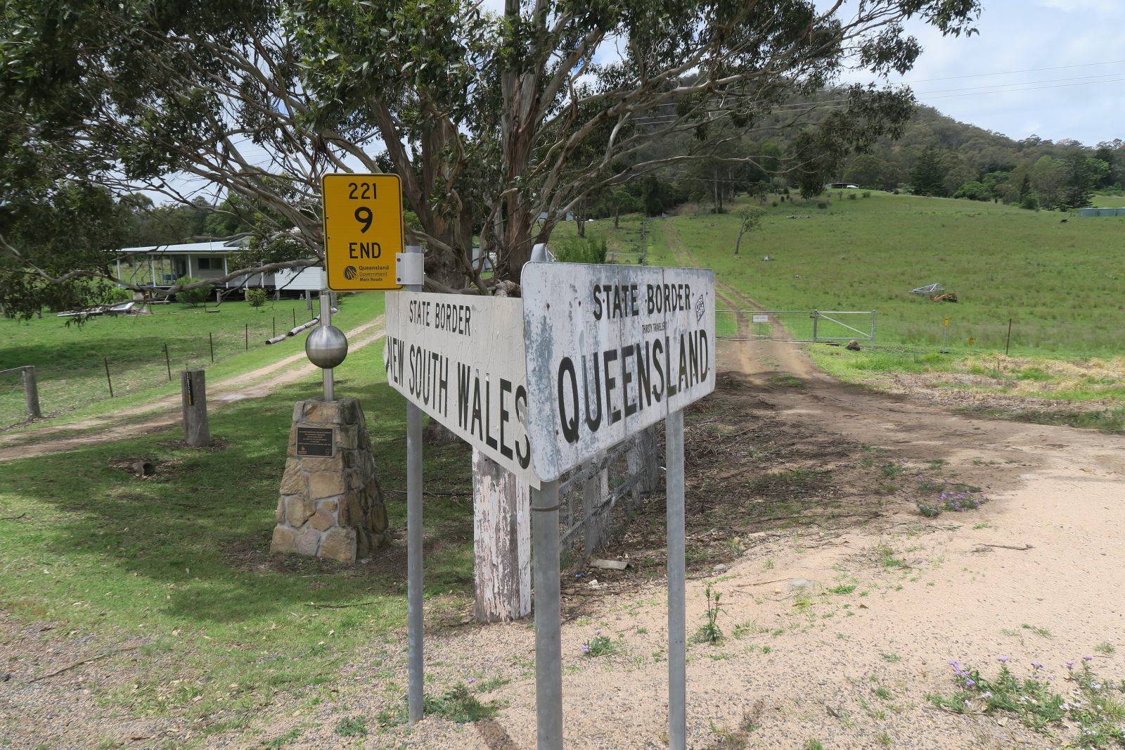 Après un petit-déjeuner à sautiller sur nos deux pieds, nous avons fait un petit décroché par la gare de Warrangalla qui se trouve à la frontière entre le Queensland et le New South Wales (littéralement à 100 m de notre lieu de camping). A l’époque il y avait une réelle frontière ici (il fallait payer une petite taxe pour passer) et les rails du chemin de fer n’avaient pas le même écartement ! Il fallait donc transvaser les marchandises d’un train à un autre. Aujourd’hui cette frontière est symbolique mais il y a toujours cette histoire de décalage horaire entre les deux régions. Le Queensland a une heure de moins que le New South Wales ! On se demande comment font les transfrontaliers s’ils habitent et travaillent dans deux régions différentes…