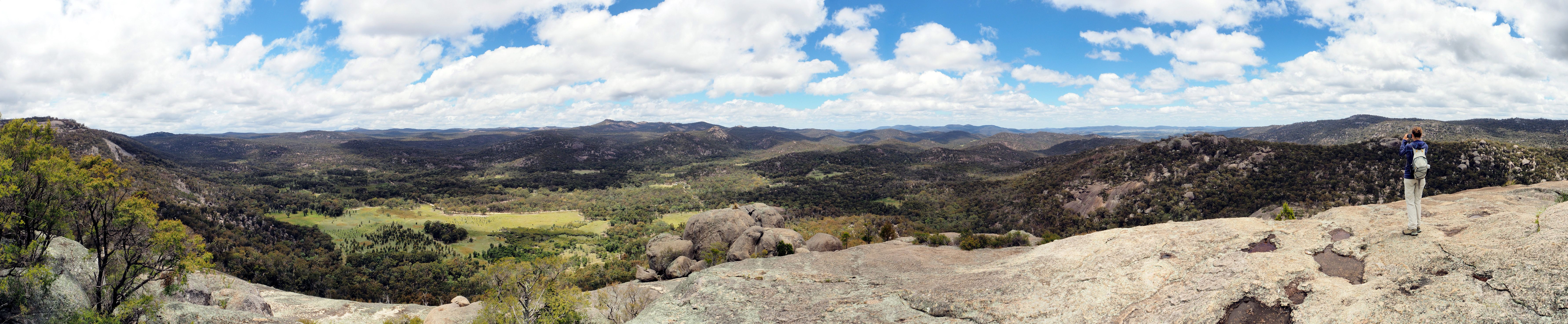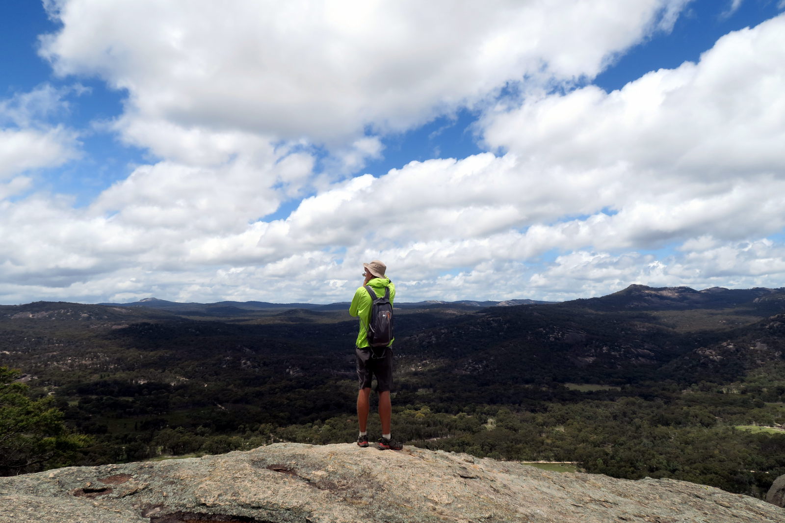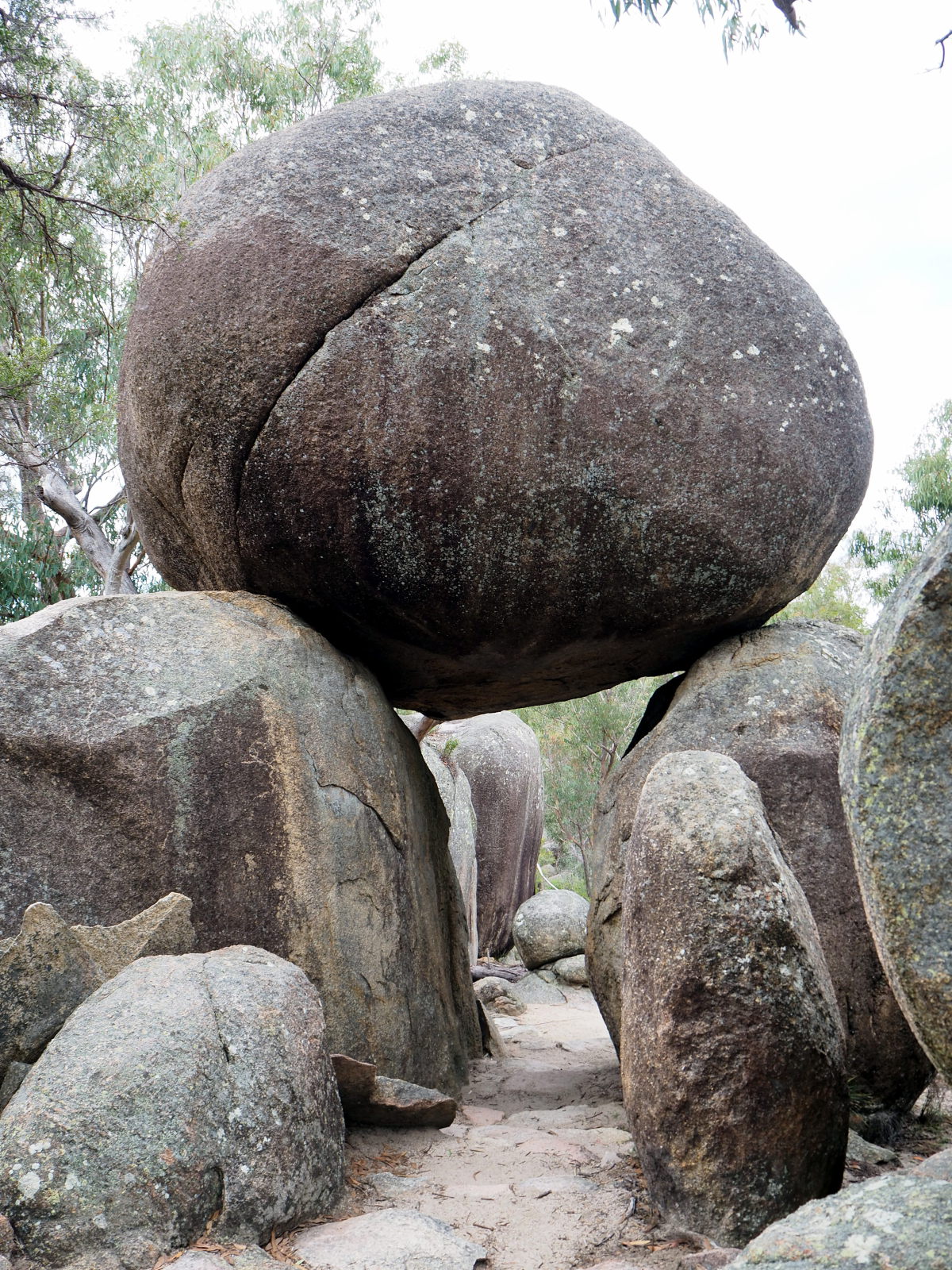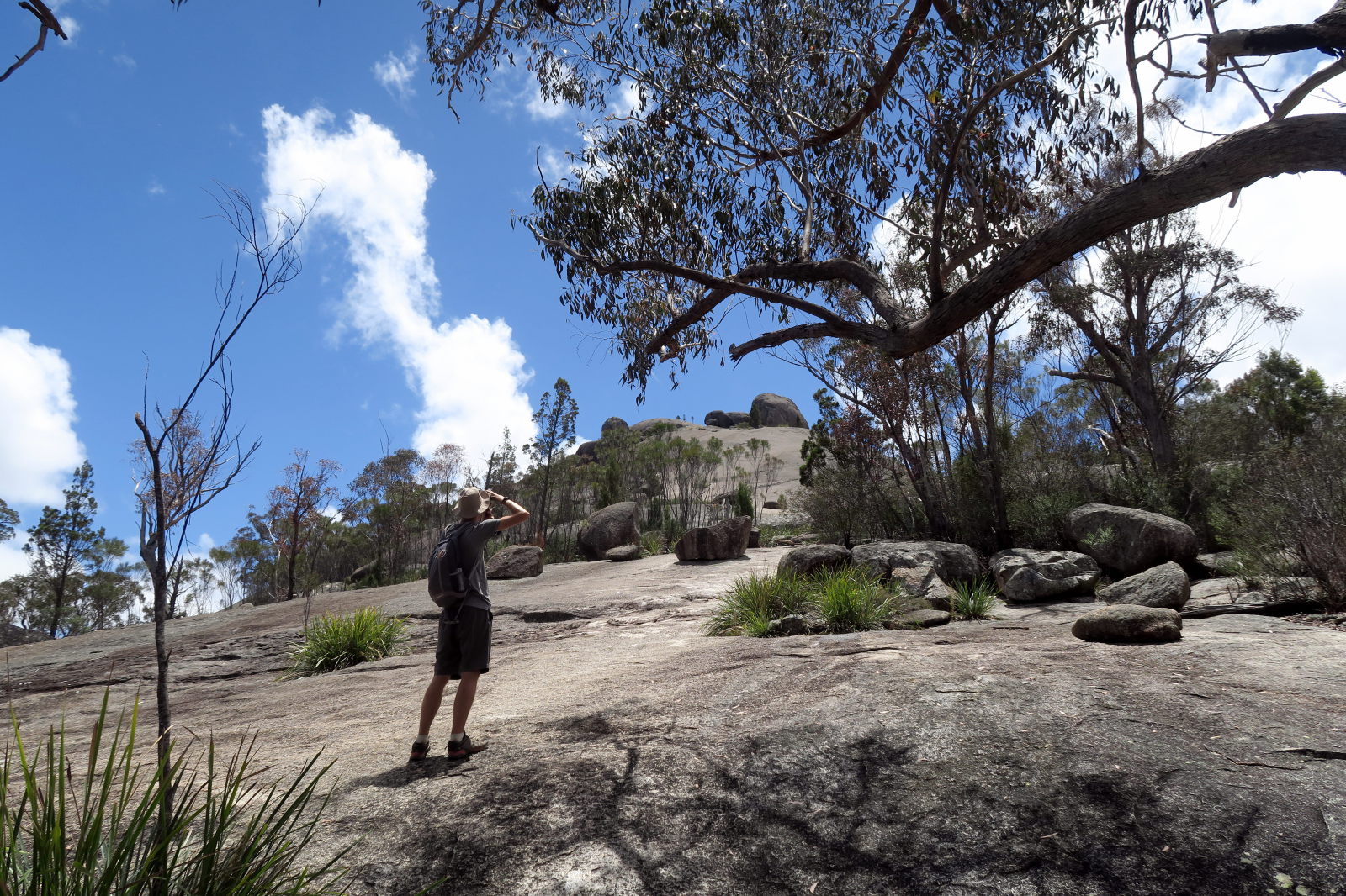Direction le parc de Girraween à quelques kilomètres de là. Motivés et heureux de refaire une « petite » marche à pied (et oui, quand on voyage en voiture tout le temps et sur de longues distances, marcher est salvateur :) ), nous entreprenons de monter la « Pyramide ». C’est un bloc de granit qui finit bien raide (à ne pas faire en cas de pluie car très glissant !) et qui donne une belle vue sur les alentours. Au sommet de cette pyramide, on peut en admirer une deuxième juste derrière, ainsi qu’un énorme rocher en équilibre qui semble menacer de tomber tôt ou tard.