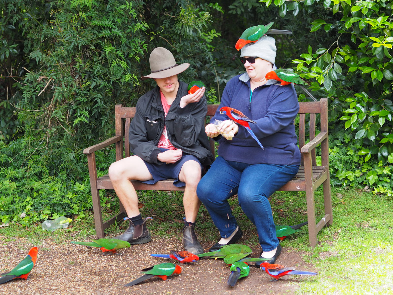 Le camping qui se trouvait vraiment proche de la cascade avait aussi une autre particularité : énormément d’oiseaux ! Dont des perruches présentes en nombre à l’entrée du camping, vu que pas mal de gens achètent des graines pour les nourrir… Cela a permis à Julien de réaliser quelques beaux clichés !