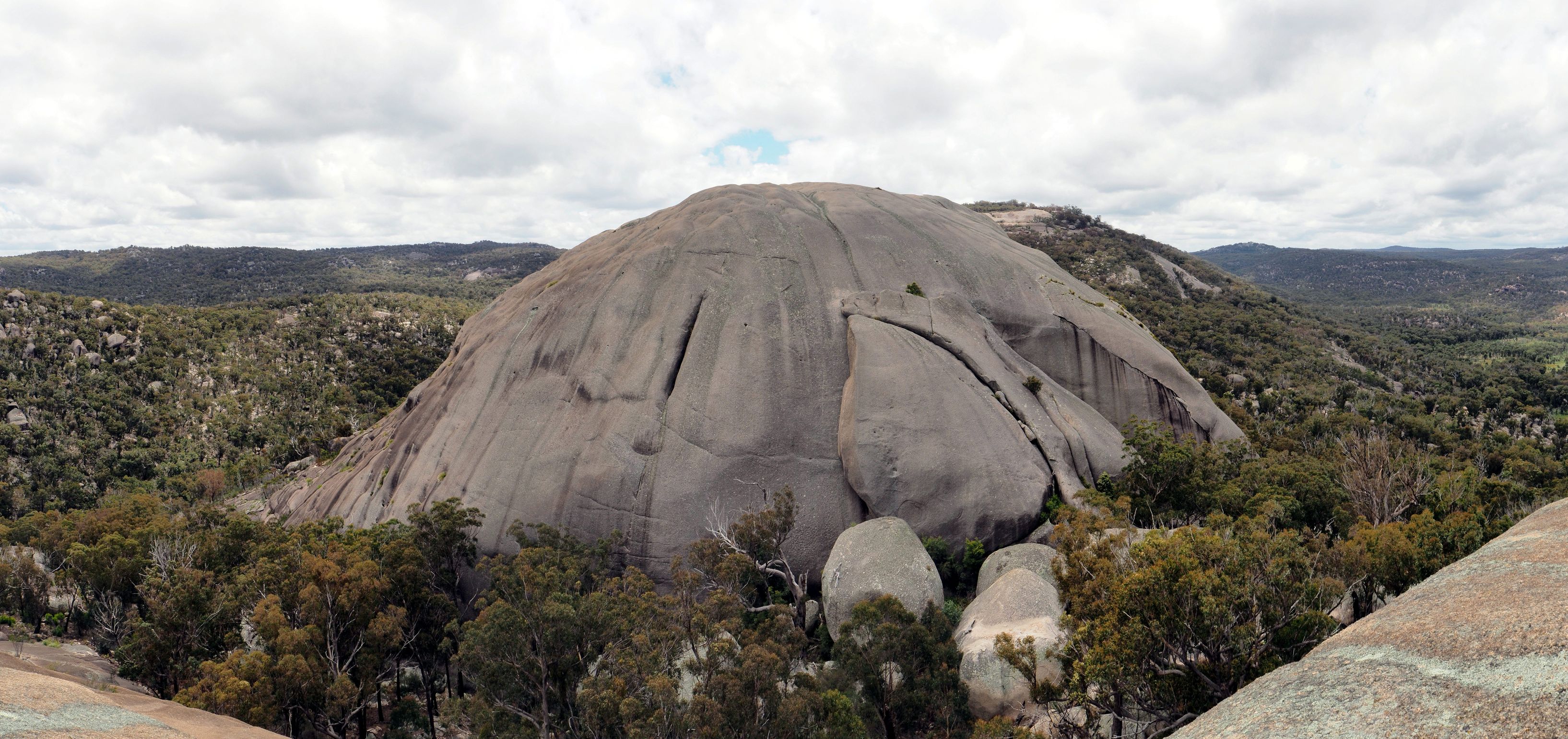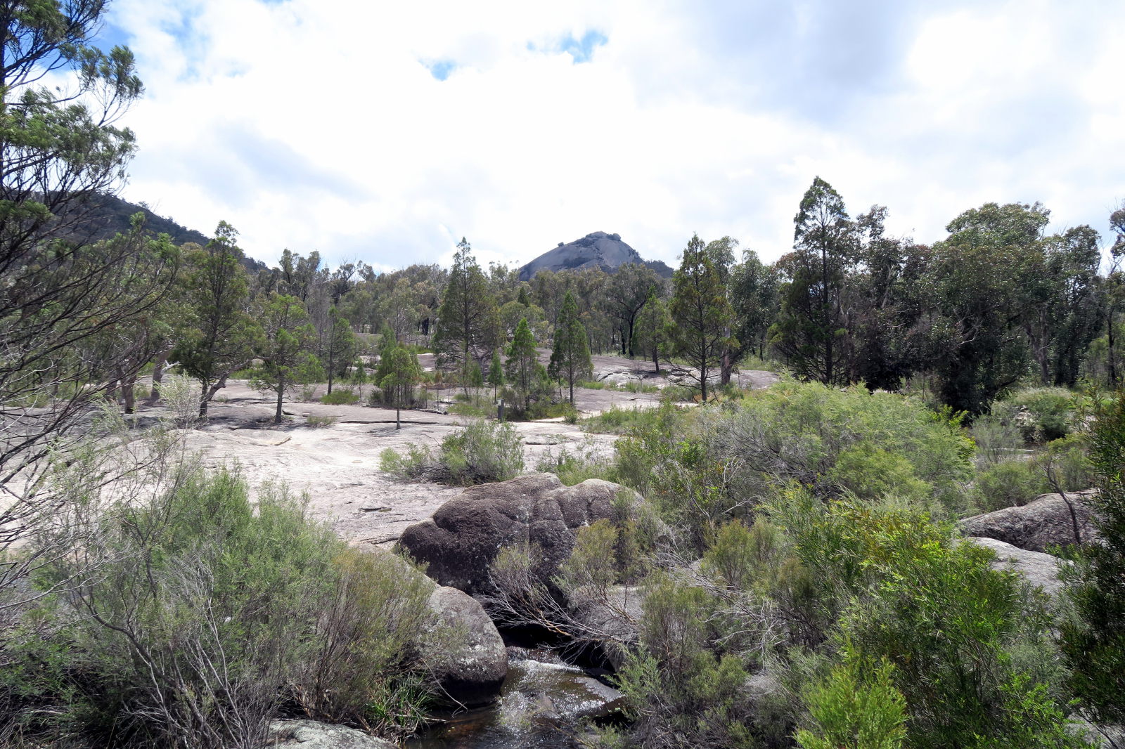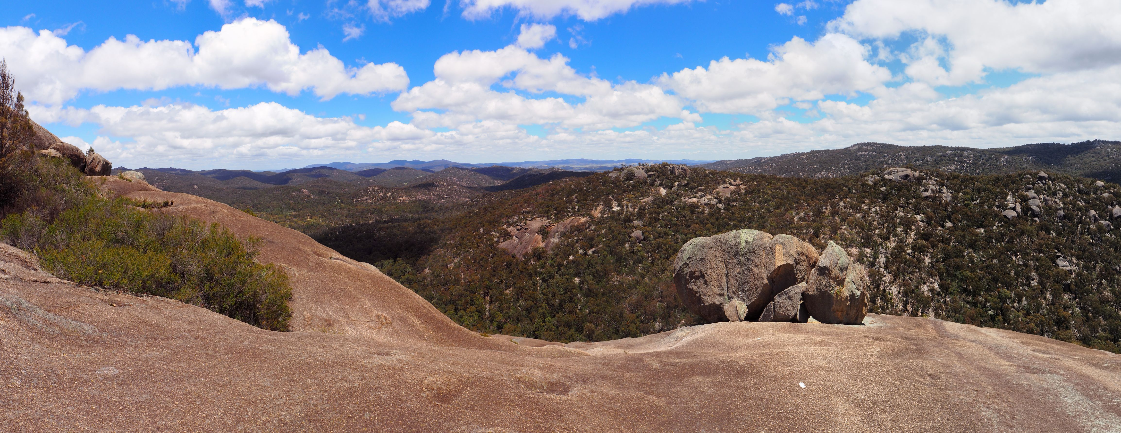 Nous avons décidé d’outrepasser la « Gold Coast » et sa ville « mythique » de Surfer Paradise (trop de bitume à notre goût) et plutôt de revenir dans les terres pour aller au Parc National de Girraween, en redescendant vers Sydney. Celui-ci est situé sur la « Granite Belt » dans le Queensland, à 260 km au Sud-Ouest de Brisbane. Sa limite Sud est la frontière entre le Queensland et le New South Wales. Il est jumelé avec le parc national de Bald Rock qui s’étend de l’autre côté de la frontière (qui abrite Bald Rock, le deuxième plus grand monolithe (après Uluru) sur le continent).