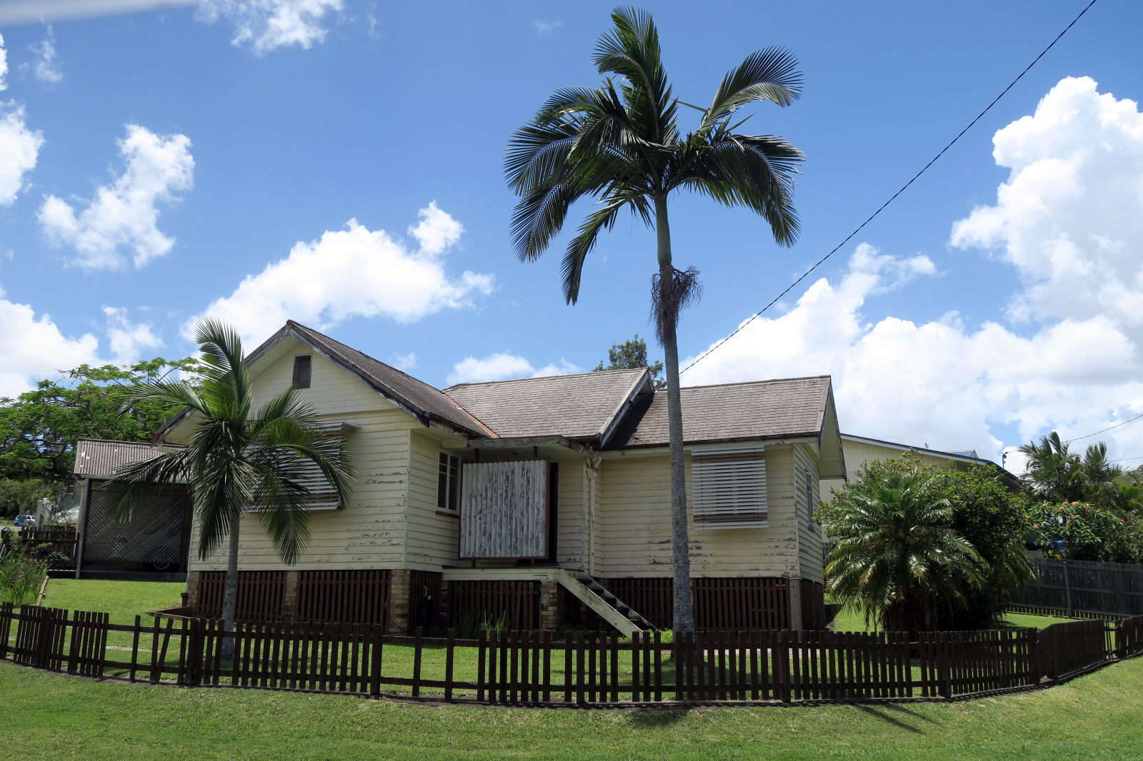 Les maisons du Queensland sont essentiellement en bois et ont la particularité d’être surélevées. Ceci pour deux raisons : d’une part augmenter l’aération des maisons et d’autre part les protéger contre les crues ainsi que contre les termites et autres insectes nuisibles. Pas de garage dans le sol comme en Europe. Plus on se rapproche de Sydney et plus les maisons sont en briques.