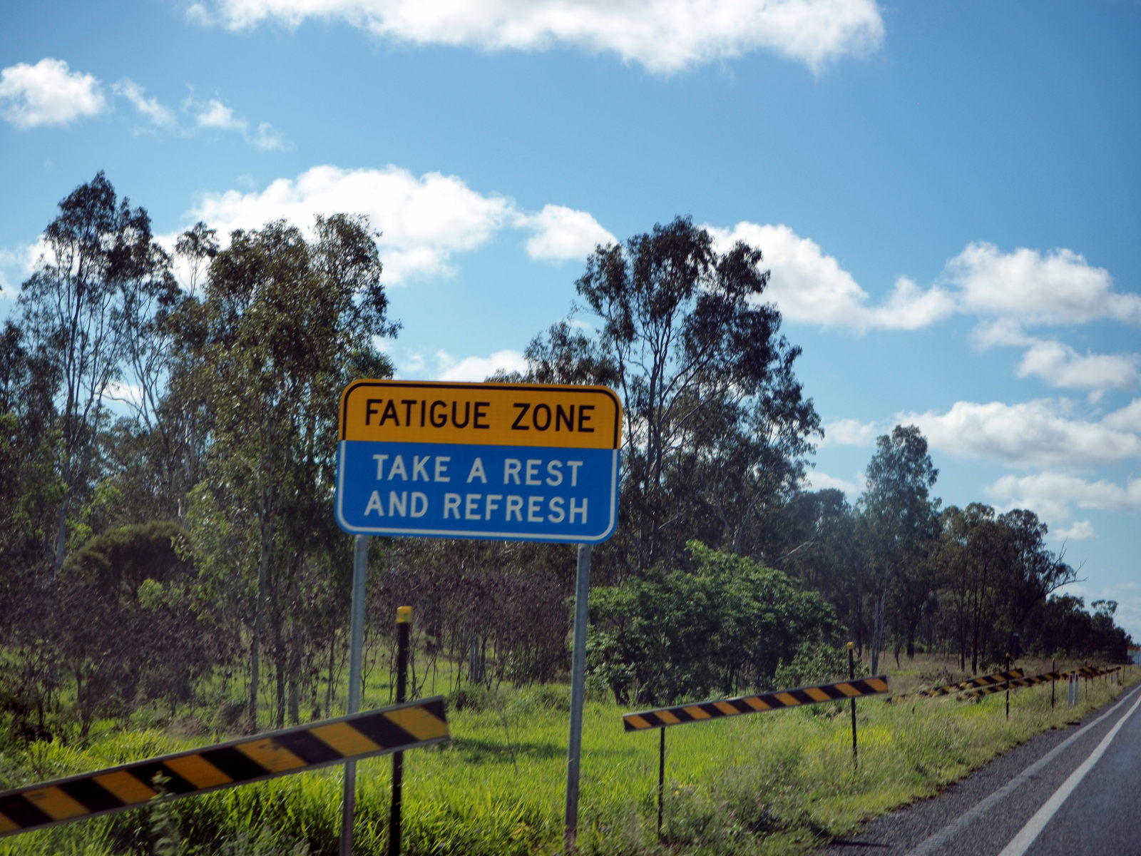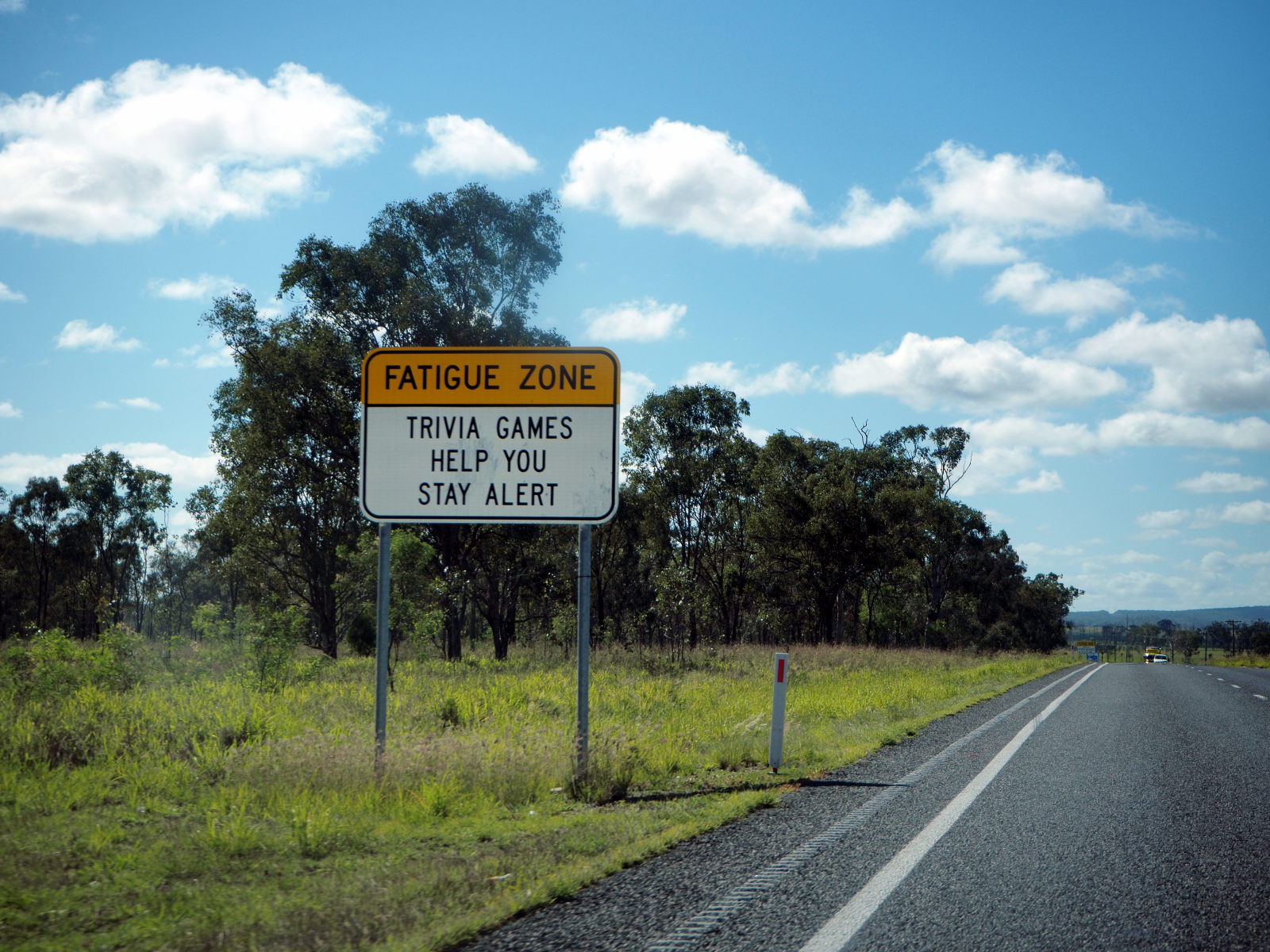 Conséquence des distances gigantesques, on doit parfois conduire pendant plusieurs heures pour rallier deux destinations… On trouve ainsi parfois, en bordure de route, des panneaux « anti-fatigue ». Ces panneaux sont éparpillés sur plusieurs mètres et regroupent des jeux, des questions et autres. Tout ce qu’il faut pour vous tenir éveillé ! C’est sympa à faire !