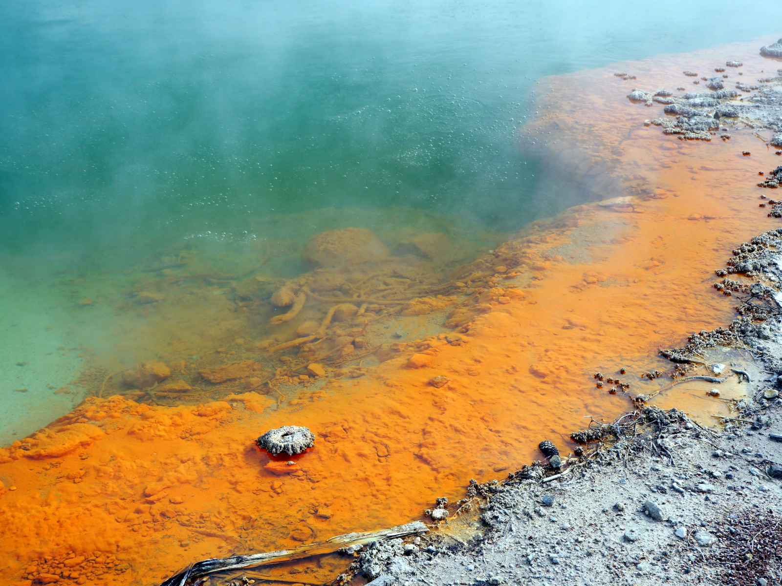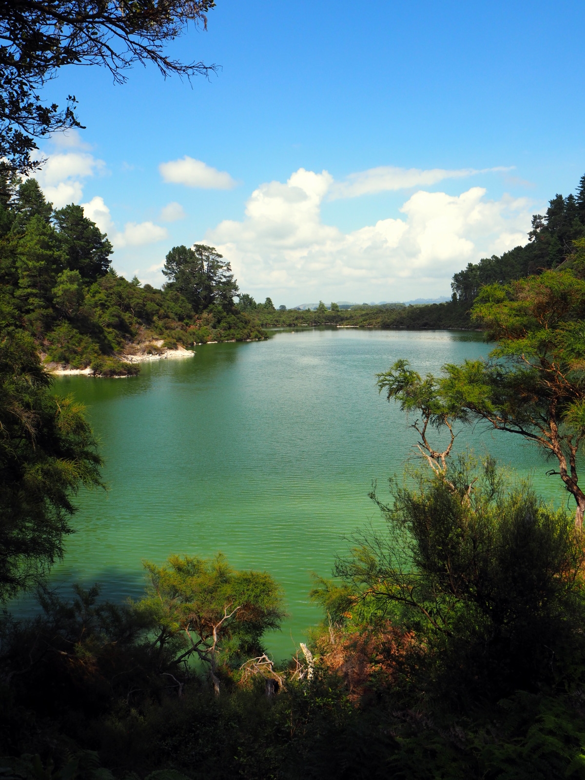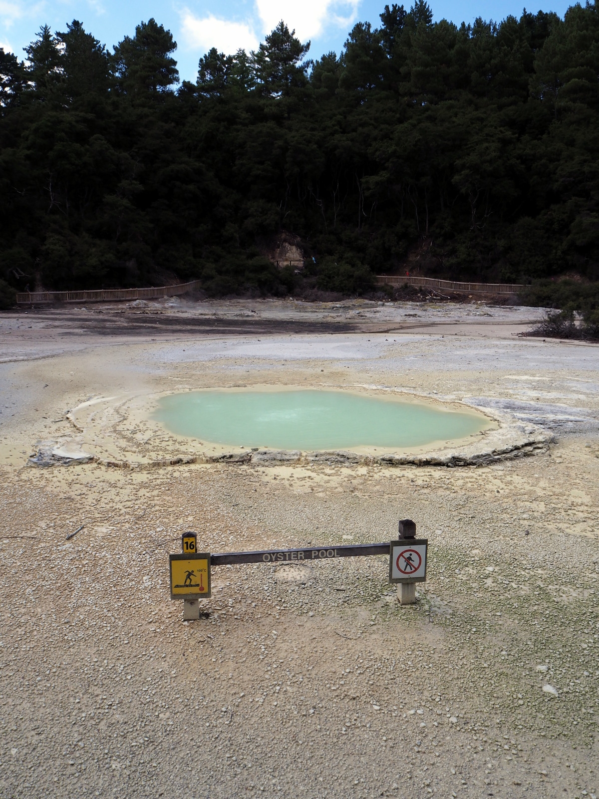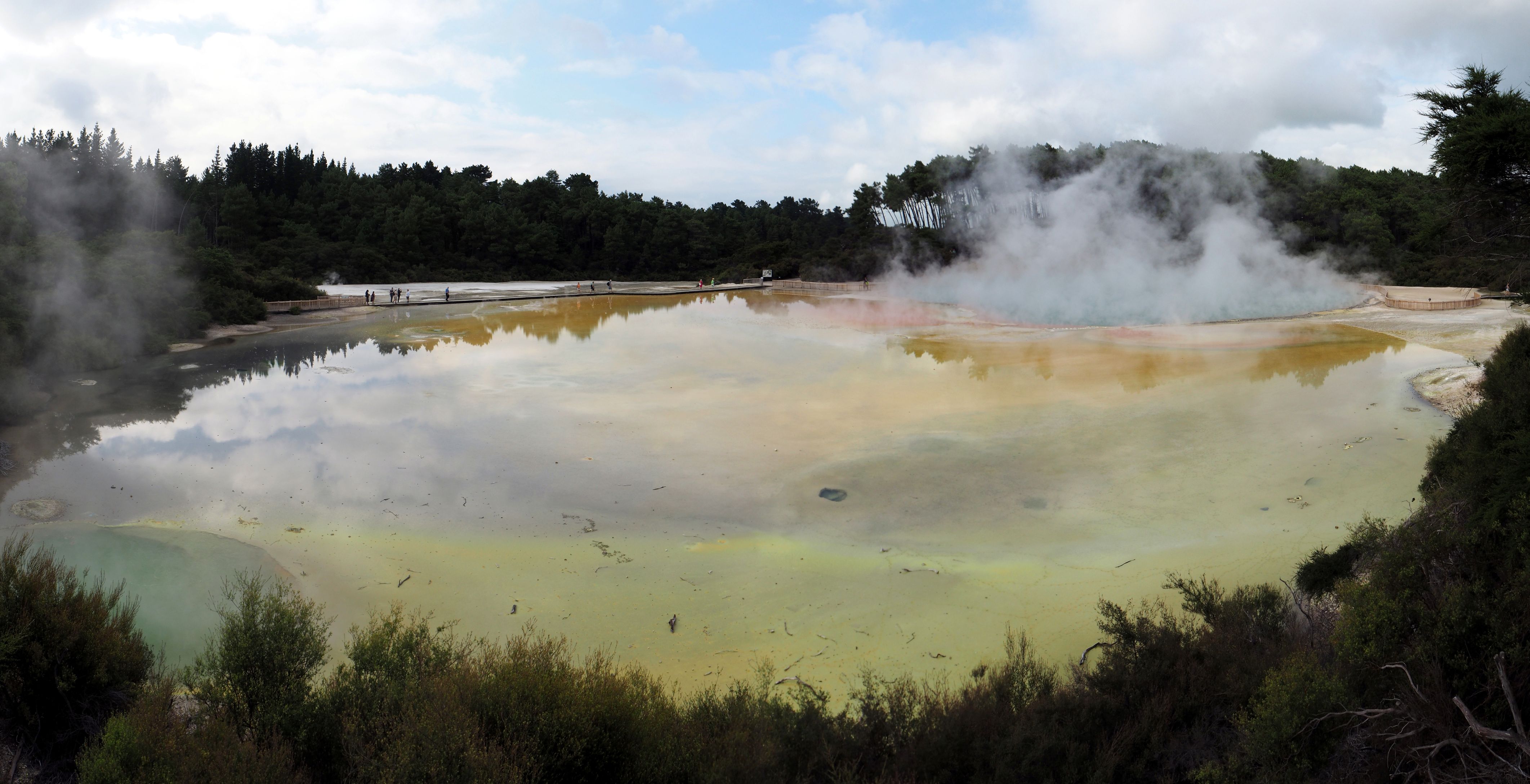 La zone thermale est traversée par la rivière Wai-o-tapu qui rejoint le fleuve de Waikato. Aucun poisson ne peut survivre dans cette rivière étant donnée la présence de composants chimiques provenant des nombreuses sources bouillonnantes de la zone. Cette réserve naturelle est la plus grande zone d’activité thermale de la région volcanique de Taupo. Cet endroit surprenant a été aménagé pour offrir une balade de 3,5 km à travers ces merveilles volcaniques. A l’entrée, on vous fournira un dépliant en français indiquant les 25 spots à ne pas manquer avec une description de ce que vous êtes en train d’admirer.