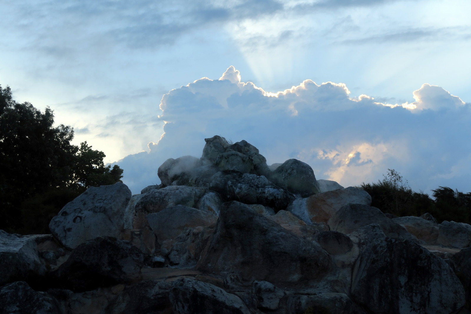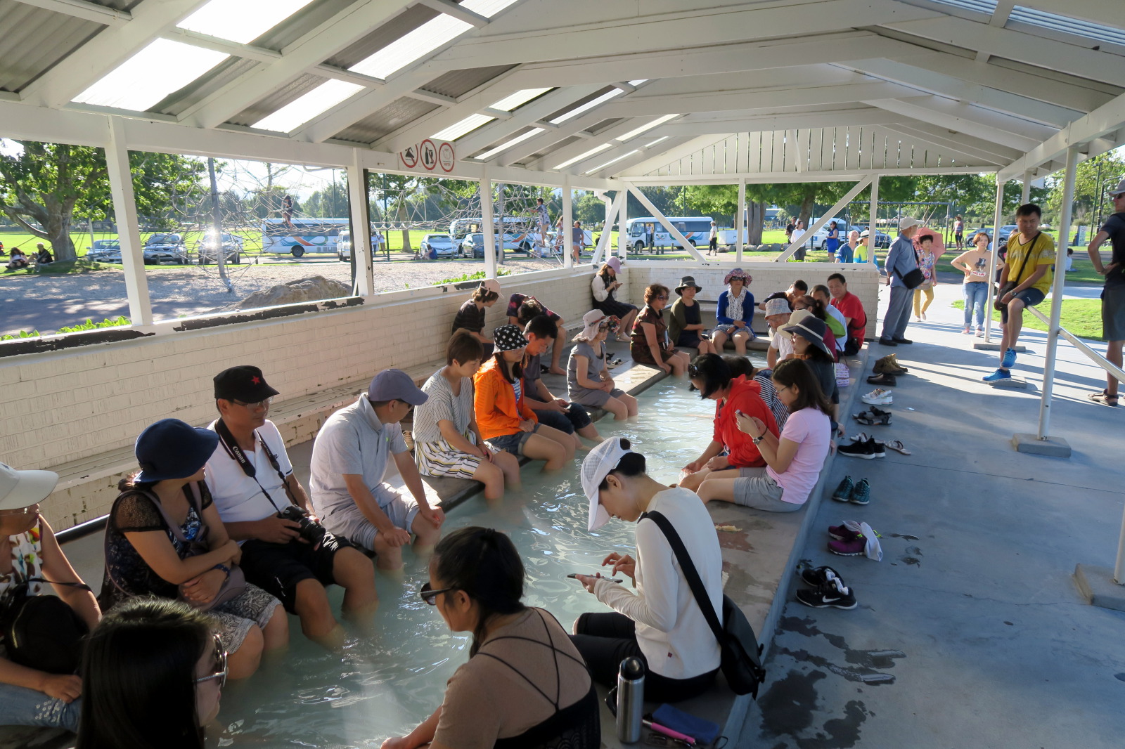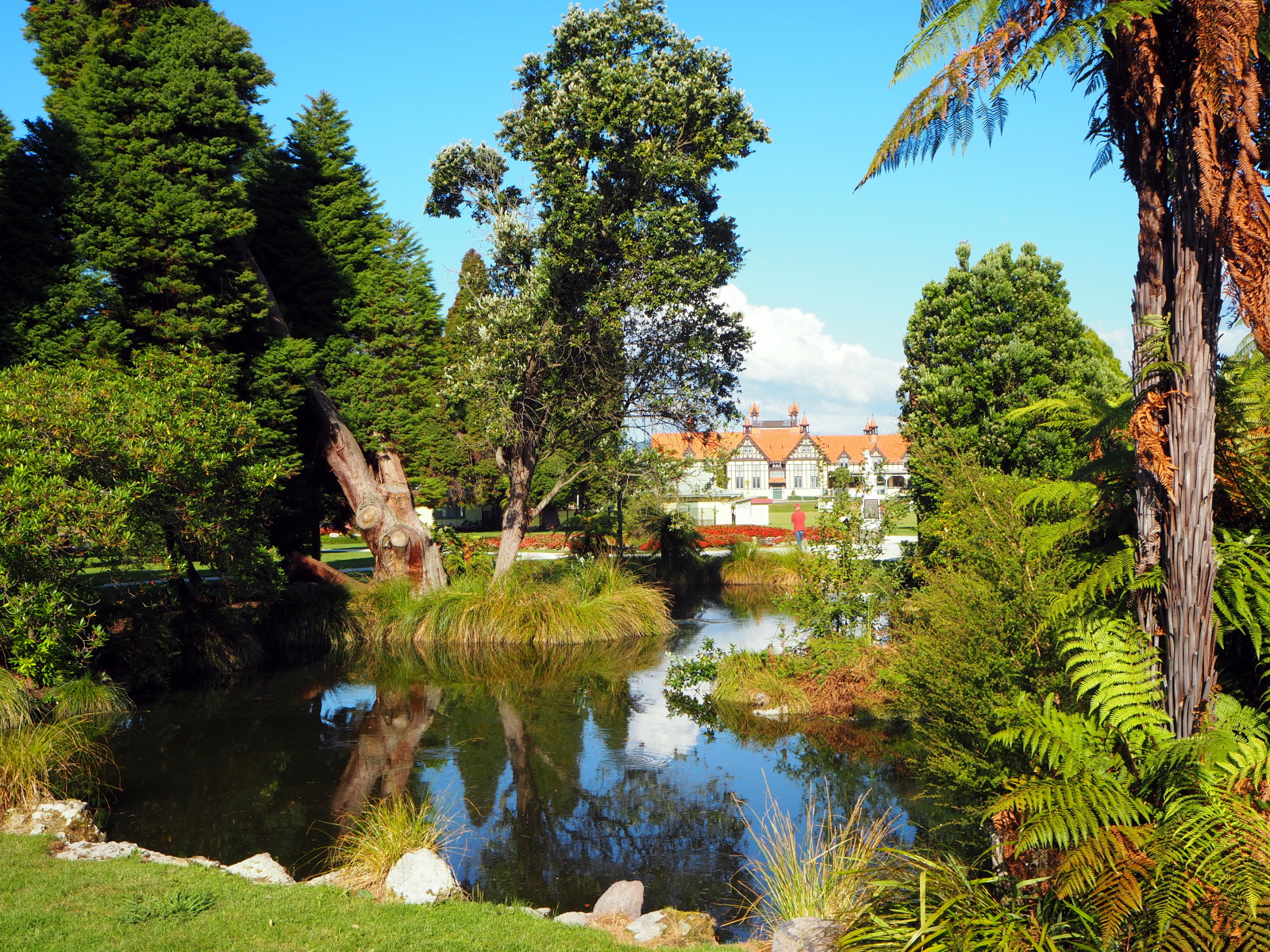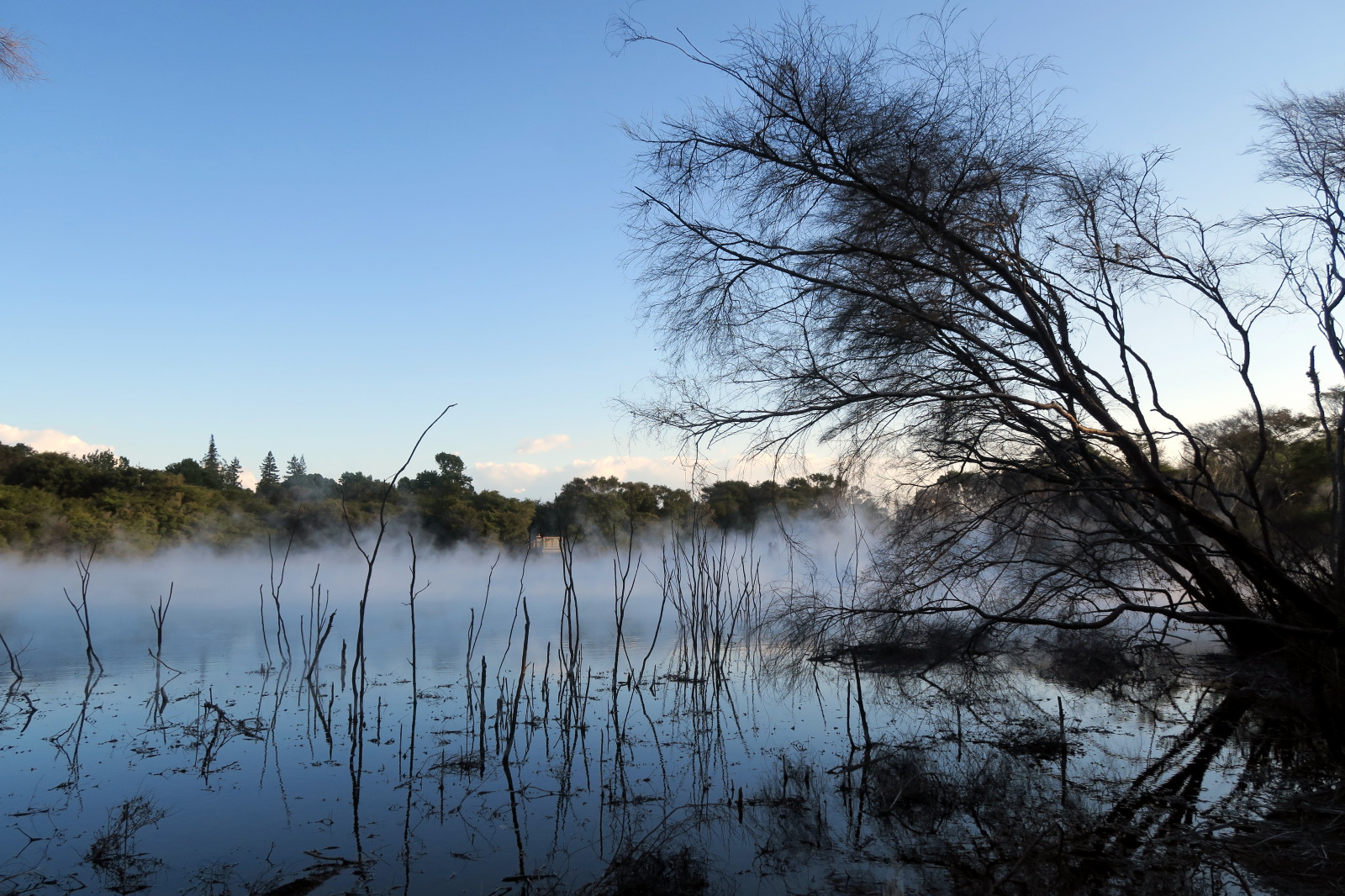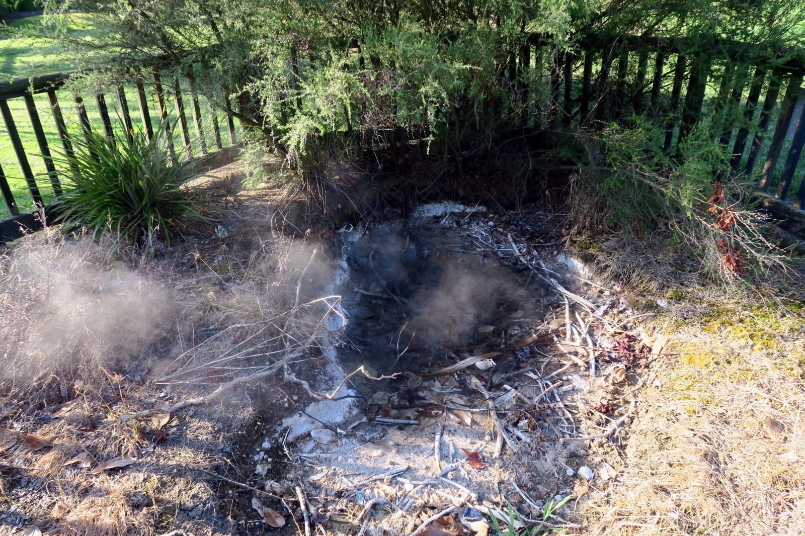 Nous profitons de la fin de journée pour visiter cette ville toute propre mais et assez désertique… Ah non ! il y avait bien des chinois ! ;) Notre aire de campement pour la nuit était juste à côté des « Gouvernment Gardens », un simple parking… Puis direction un parc public où l’on peut voir des sources chaudes et des bassins de boue bouillonnante ! C’est très insolite et surtout mystique avec la lumière tombante…