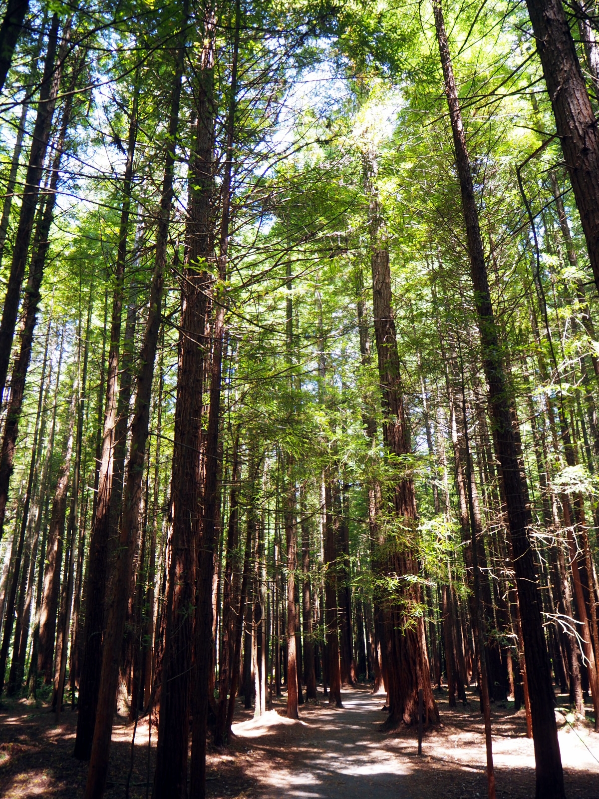 A la sortie de Rotorua se trouve une forêt assez incroyable de « Redwoods » avec ses grands arbres de 60 mètres de haut…