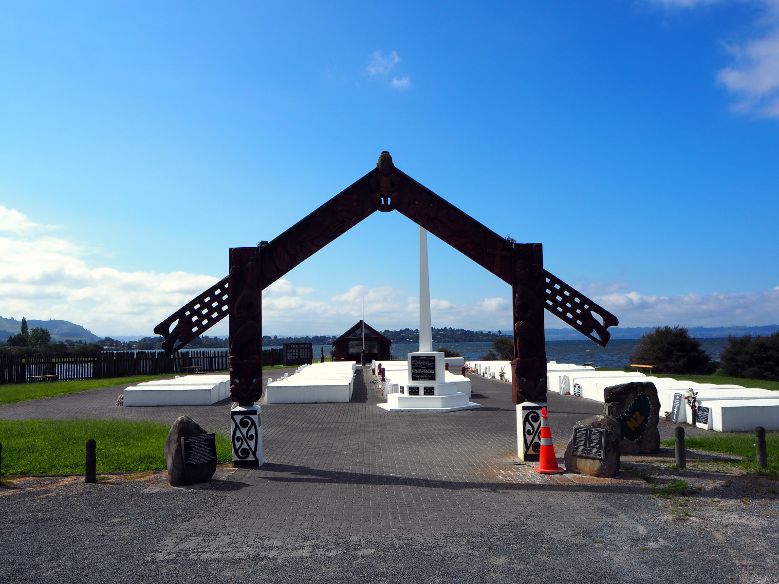 Nous remontons vers la ville de Rotorua connue pour être un haut lieu de la culture Maori mais aussi pour son activité volcanique. Autre particularité, qu’on ne trouve pas forcément dans les guides : l’odeur ! Et oui ici les volutes de fumée sortant des nombreuses sources chaudes ont une forte de soufre, ressemblant à de l’œuf pourri… ;)